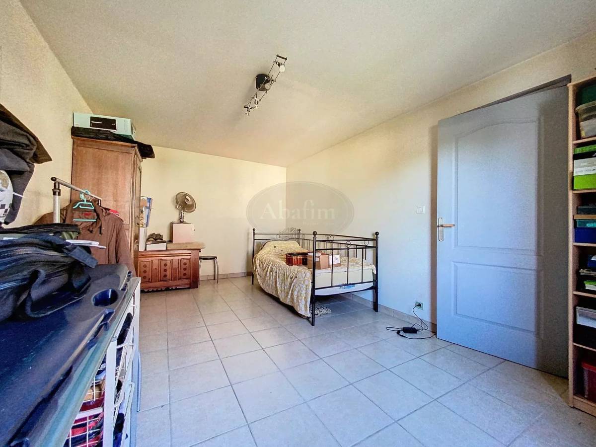 The stairs leads up a 37m² bedroom with an open view via the patio door of the surrounding countryside and Pyrenean foothills.