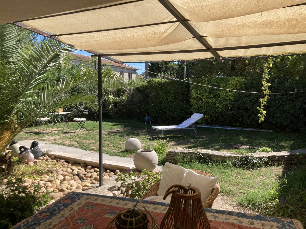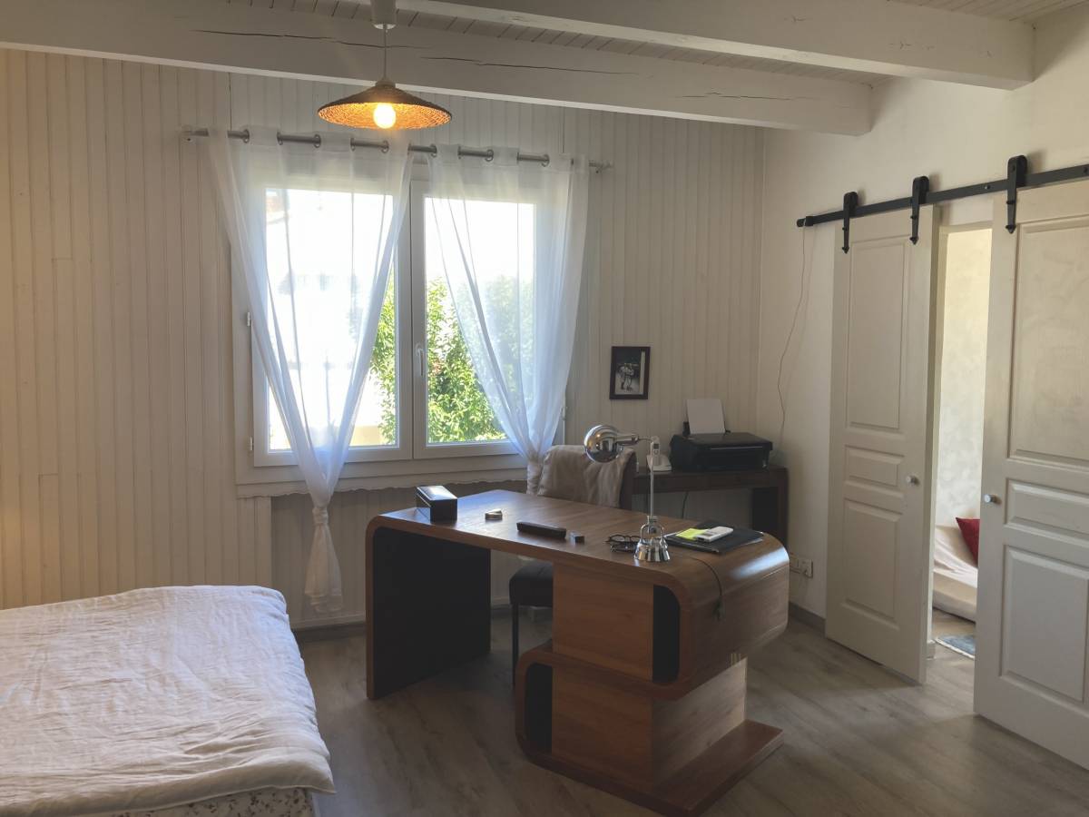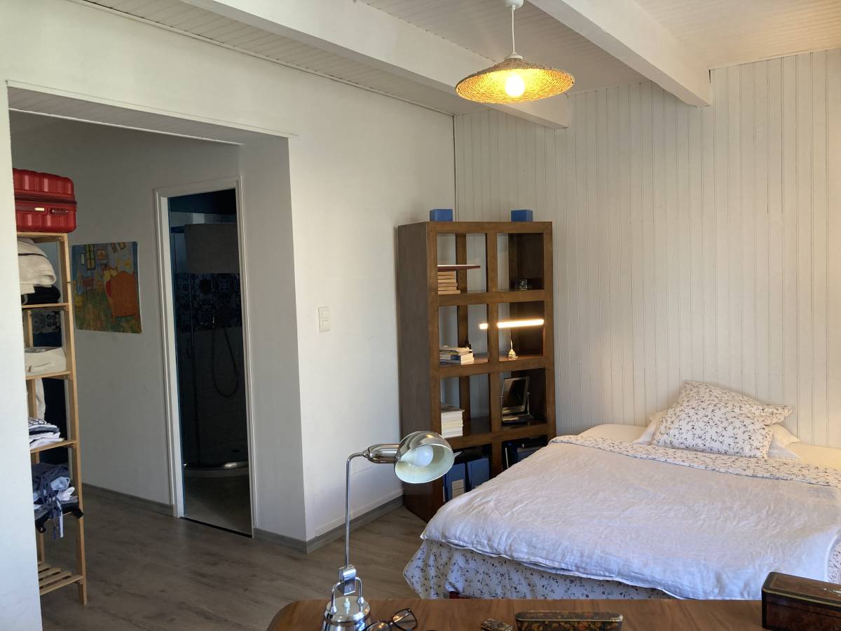 Upstairs, two bright bedrooms await, one with a small mezzanine that adds character and extra space. This level also includes a WC, a shower room, and access to a terrace, offering a private outdoor retreat. For convenience, a small garage and carport are available, providing secure parking and storage.