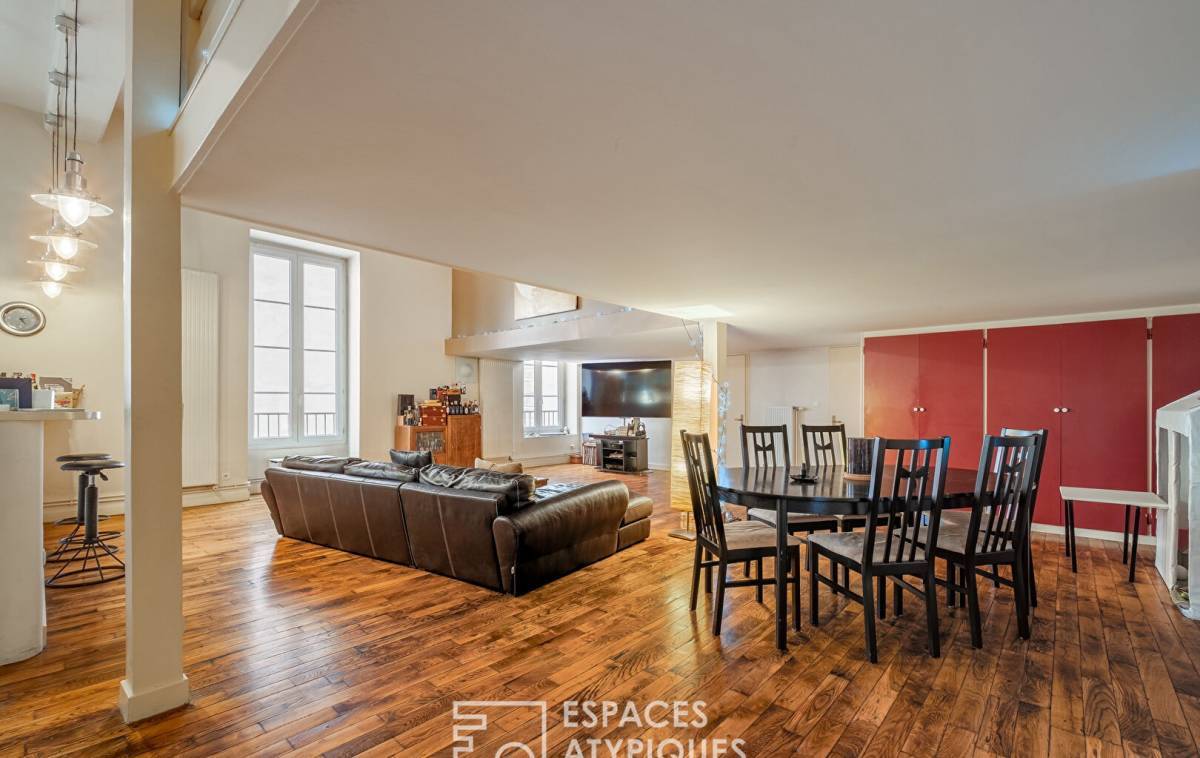 In Lyon 1st, a stone's throw from the Martinière sector, this 142m2 apartment is located on the 2nd floor with elevator of a former convent.