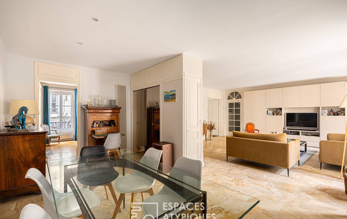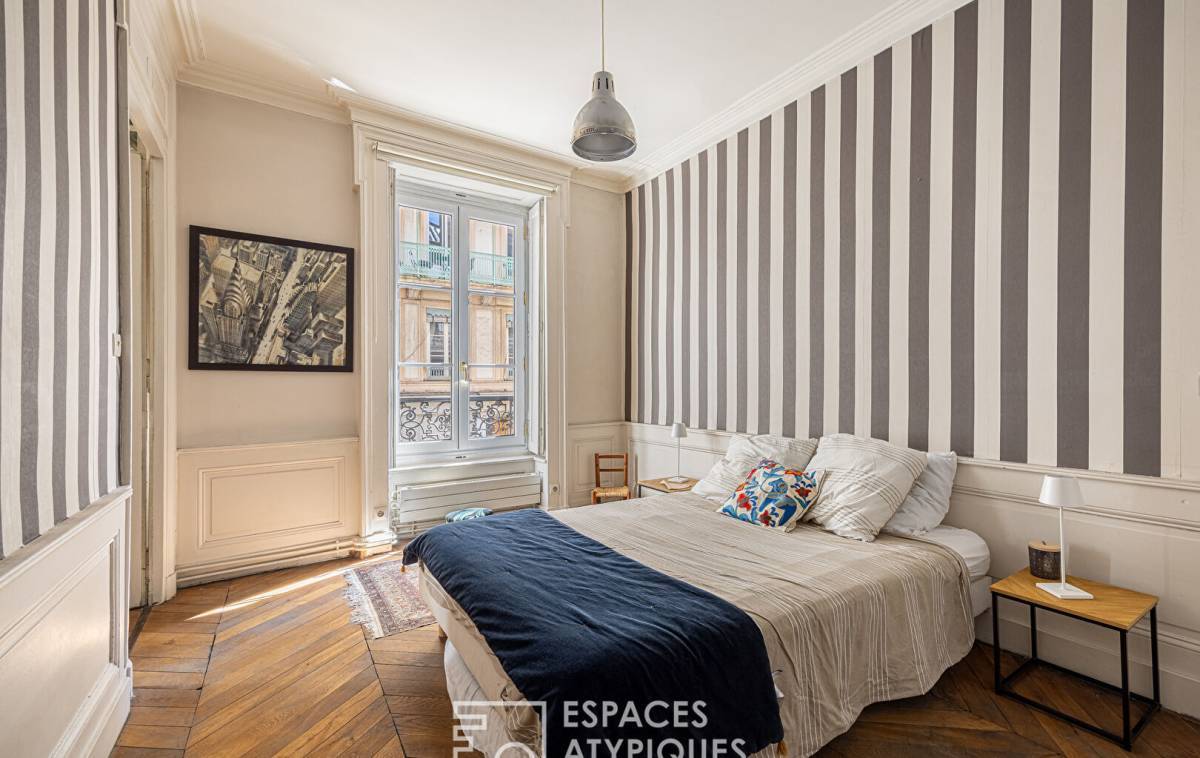 Located on Rue de la Charité, in the heart of the Ainay district, in the second arrondissement of Lyon, this 130sqm apartment (127.46sqm Carrez Law) is located on the first floor of a beautiful, perfectly maintained bourgeois building. From the entrance, the various spaces invite us to calm and relaxation. Here, all the markers of the old, such as the herringbone parquet floors, the moldings and the small-paned openings have been preserved and subtly combined with a contemporary vision in order to enhance this place already imbued with a most certain cachet. Crossing East-West, the day space consists of a living room bathed in light with remarkable volumes, including a living room, dining room and serving a separate, fitted and equipped kitchen. The night space includes three comfortably sized bedrooms, one of which is called the master, two bathrooms and a separate toilet. Its character, its location in close proximity to all amenities as well as its perfectly maintained bourgeois co-ownership are undeniably the major assets of this property and make it an ideal place to live. A cellar completes the property. Possibility of installing air conditioning. No proceedings in progress in the co-ownership. ENERGY CLASS: D / CLIMATE CLASS: D Average amount of energy indexed for the years 2021, 2022, 2023 (subscriptions included): between EUR1980 and EUR2730. -