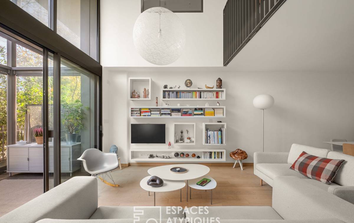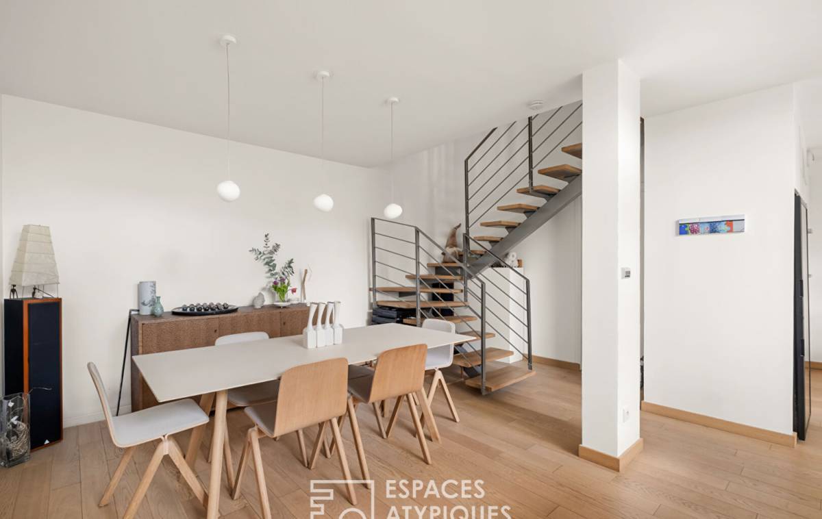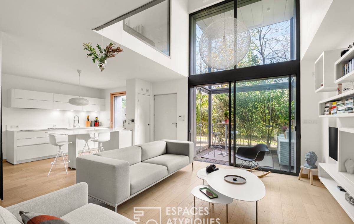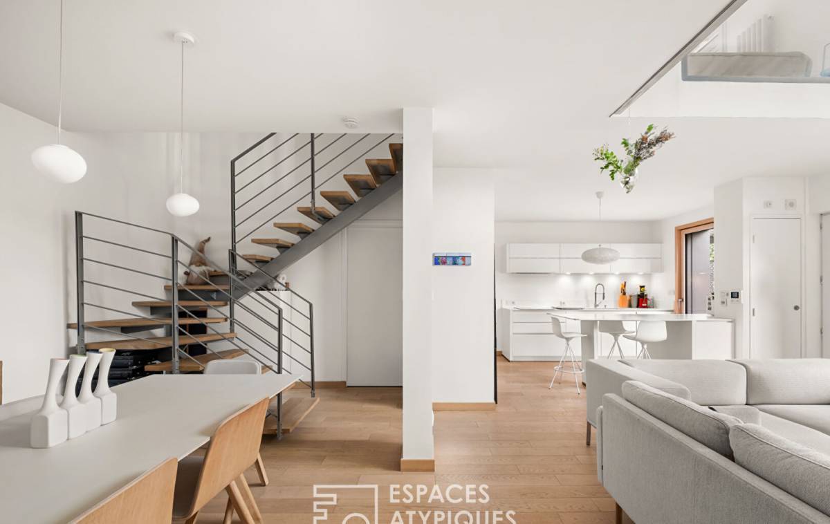 In Lyon's 5th arrondissement, this contemporary 117 sq m duplex apartment impresses with its architecture and clean lines. Located within the prestigious Debrousse Parc residence, built in 2015 and secured with a concierge, it boasts a 22 sq m terrace overlooking greenery, offering a true extension of the living spaces.