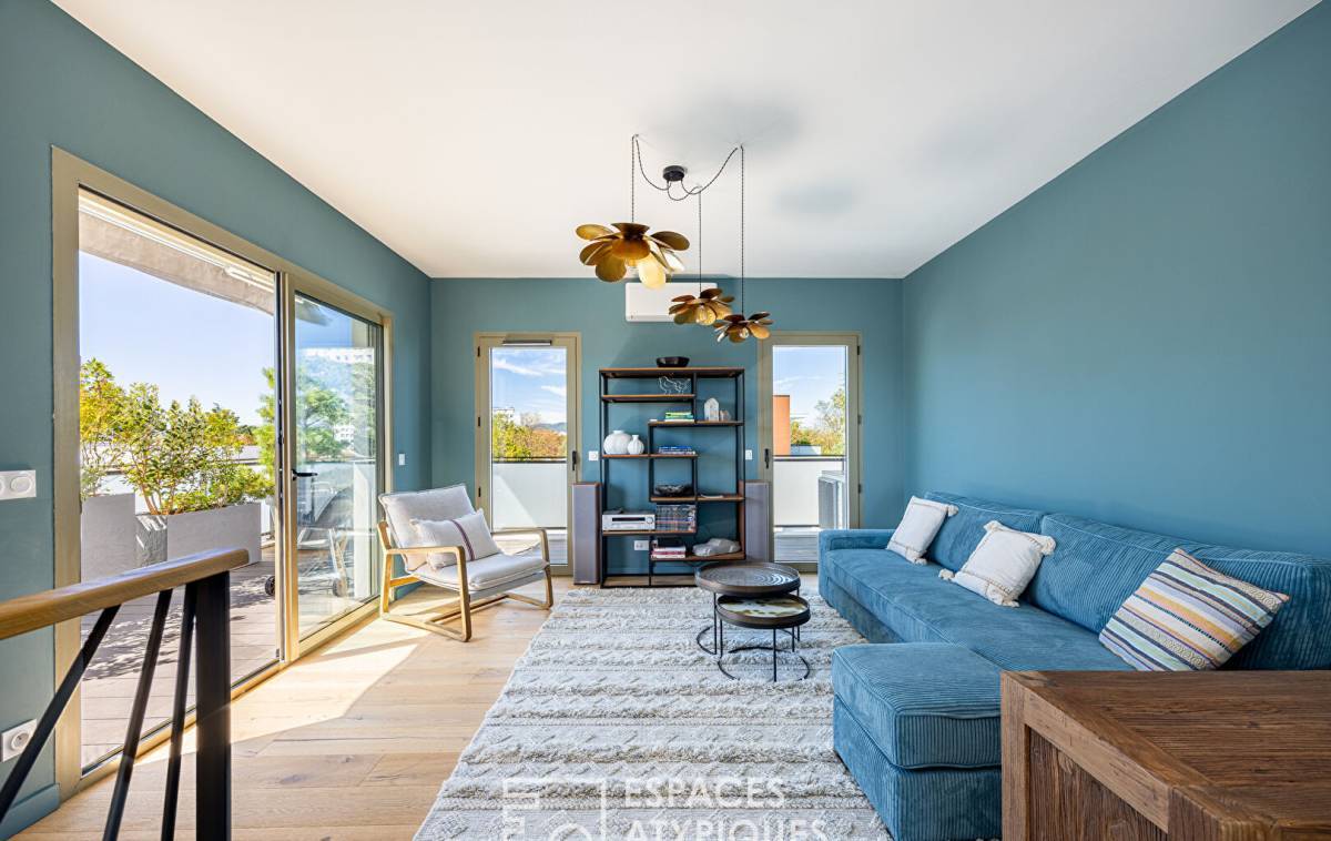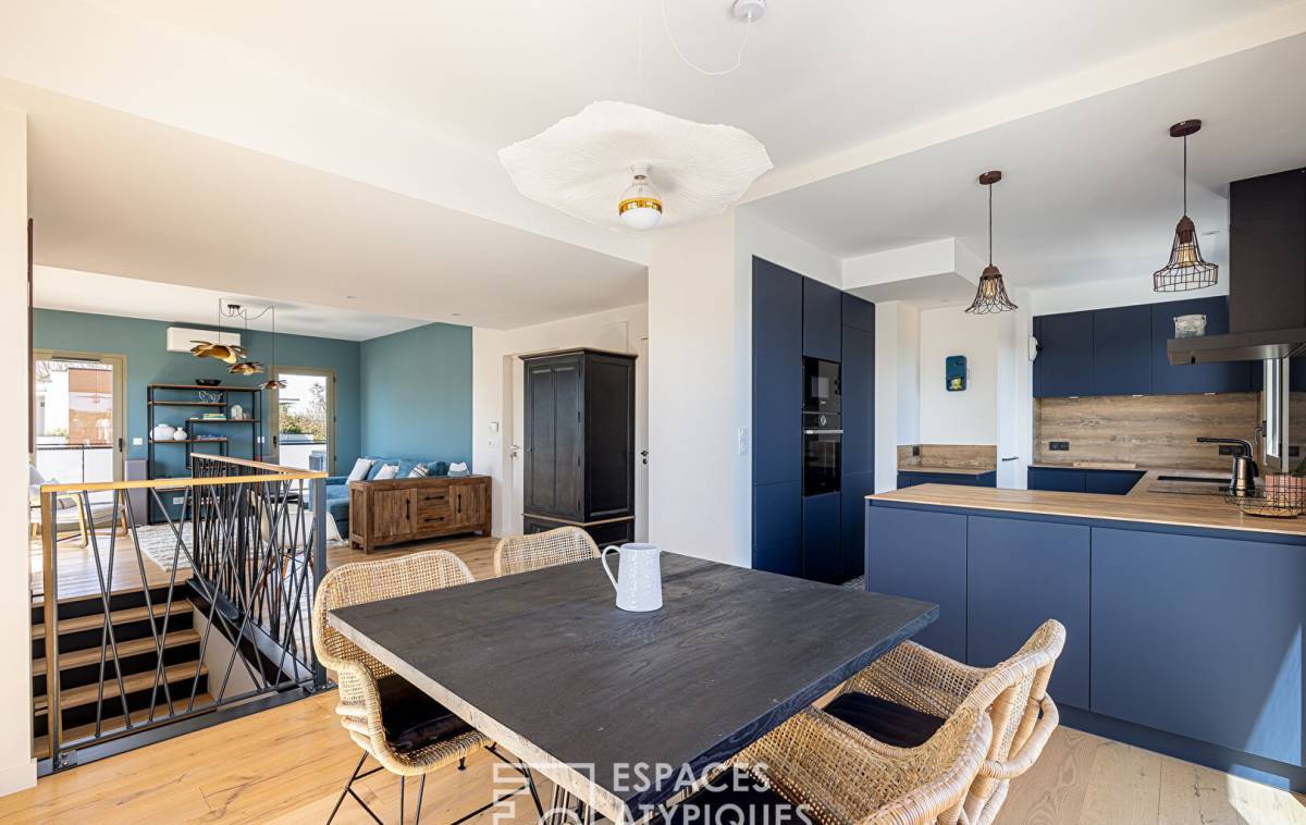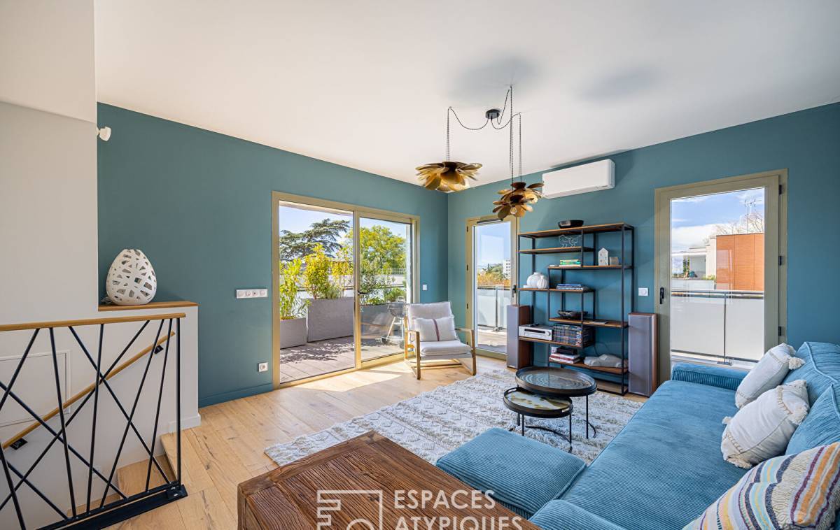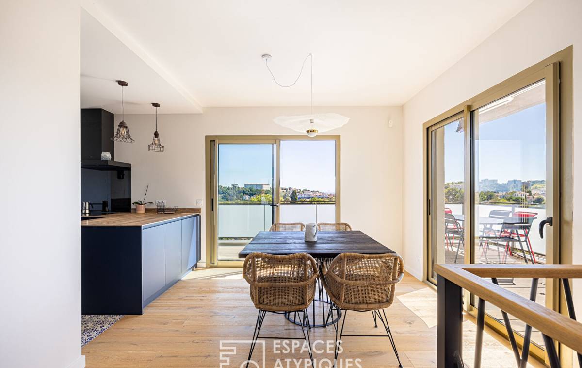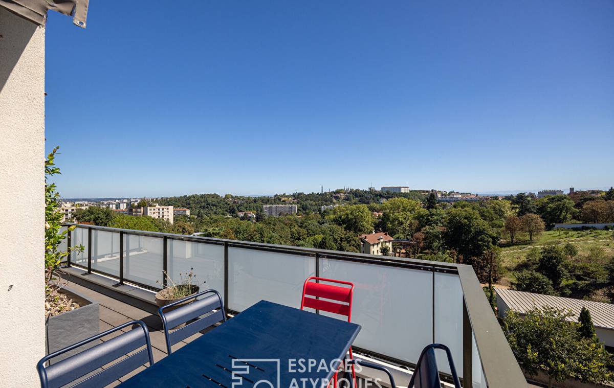 Located in the sought-after Point du Jour district of Lyon 5th, this 140m2 duplex apartment with a 45m2 terrace and breathtaking views of the Fourvière Basilica is located on the top floor of a recent building.