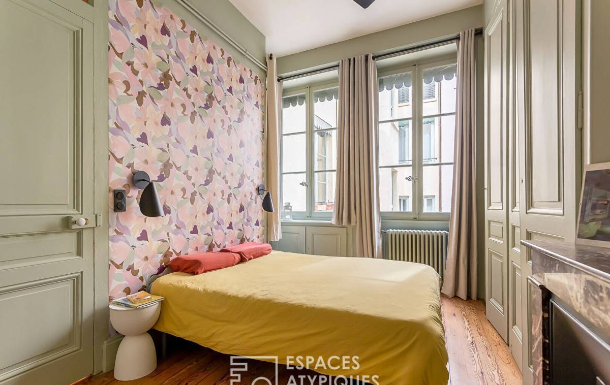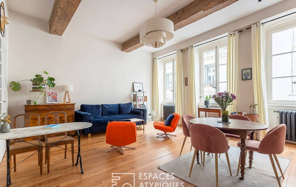 Ideally located in the prestigious Grôlée district, just steps from the Basilique Saint-Bonaventure in Lyon's 2nd arrondissement, this 89 sqm (Carrez law) apartment sits on the 3rd floor (with elevator) of a beautifully maintained bourgeois building.