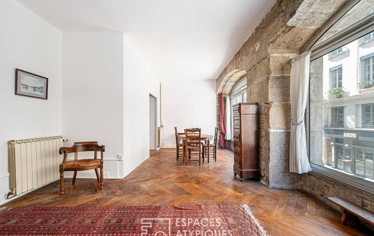 Located Place des Celestins, in the heart of the second arrondissement of Lyon, this 85sqm Carrez apartment (92m2 floor space) is located in the former Celestins cloister dating from the 12th century. A true place steeped in history, here, all the markers of the old, such as the Hungarian point parquet flooring, the fireplaces as well as the openings and the vaulted ceilings, or the Lyon-style cupboards, have been carefully preserved. From the moment you enter, the place invites you to calm and contemplation. Crossing, the apartment consists of a living room with generous volumes including a living room area as well as a dining area, an independent kitchen, two bedrooms, a bathroom and a toilet independent. Its privileged address, its character as well as its strong potential and its proximity to all amenities are undeniably the major assets of this property and make it an ideal place to live. A parking space located in the courtyard of the building as well as a cellar completes this property. ENERGY CLASS: D / CLIMATE CLASS: D Estimated average amount of annual energy expenditure for standard use, established based on energy prices for the year 2021: between EUR1,360 and EUR1,900.
