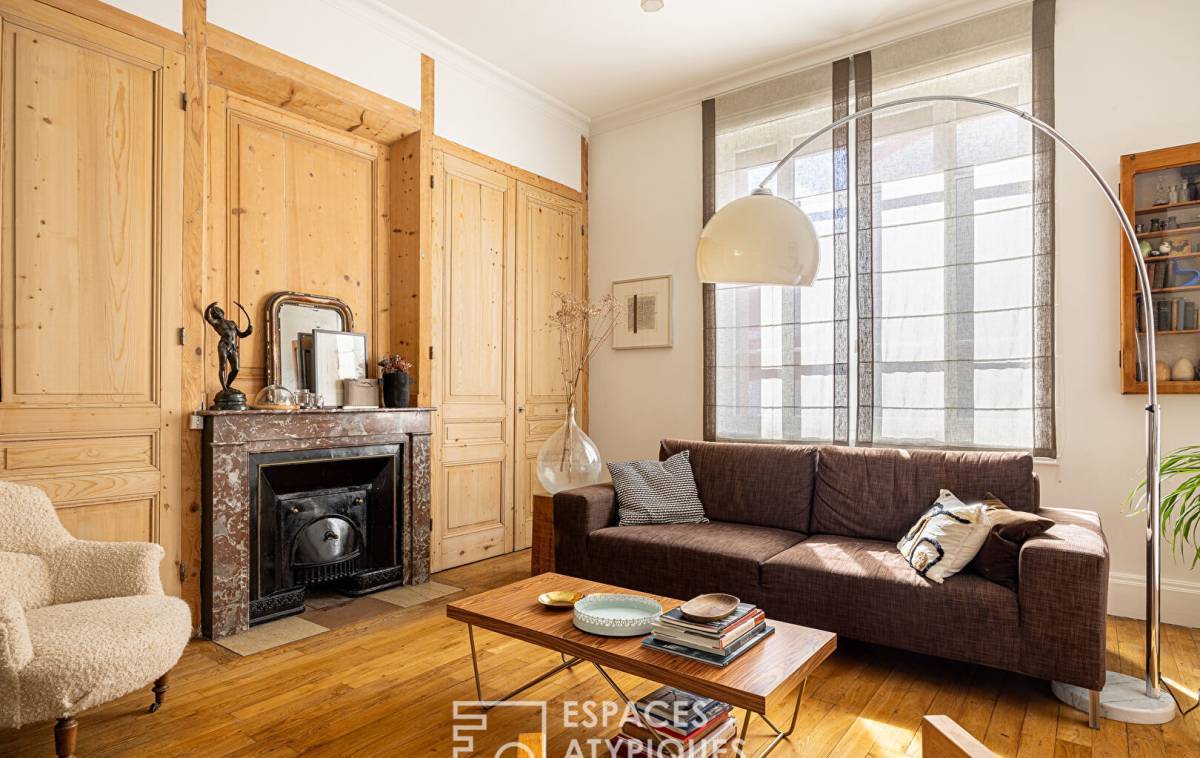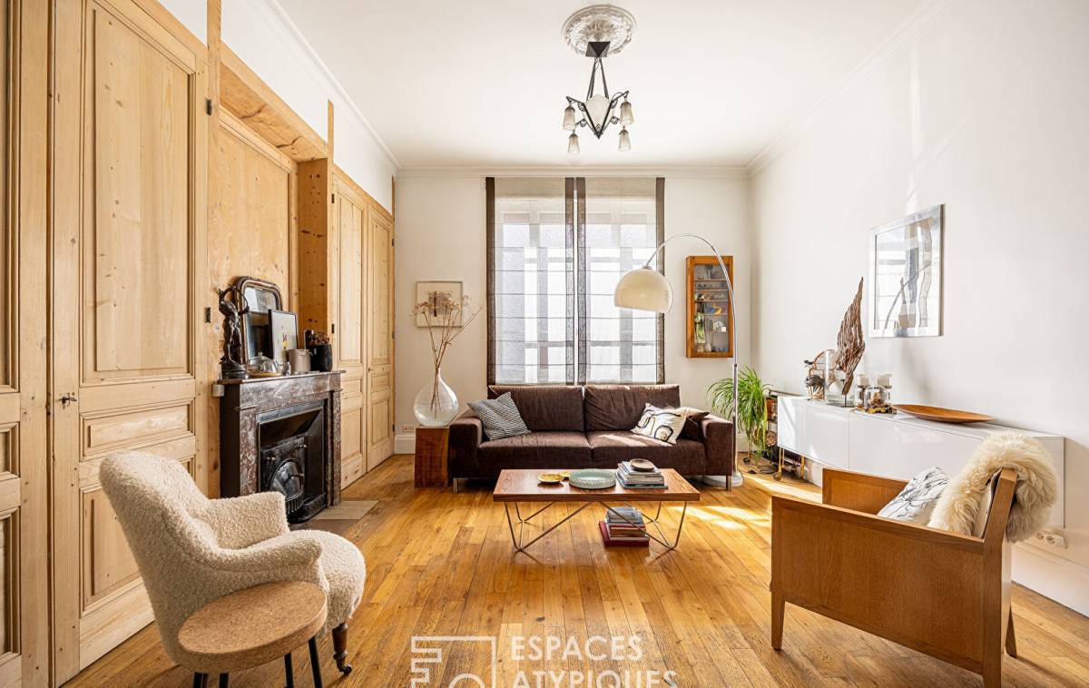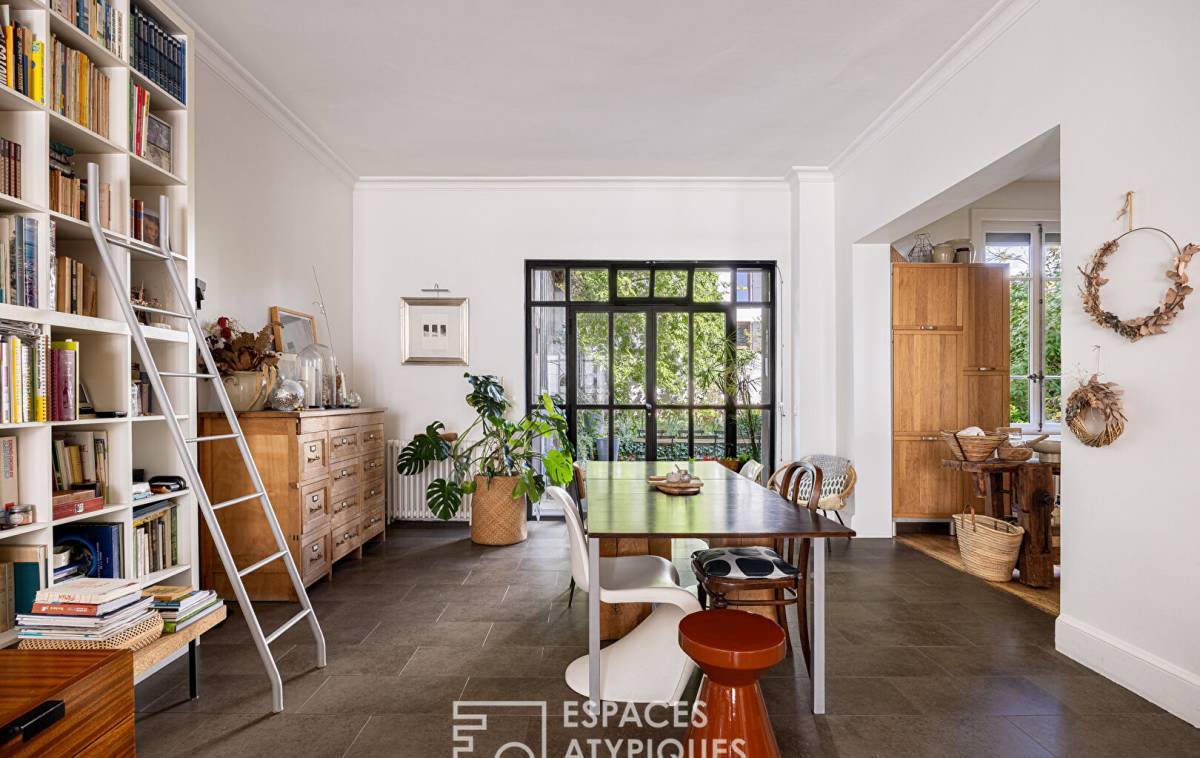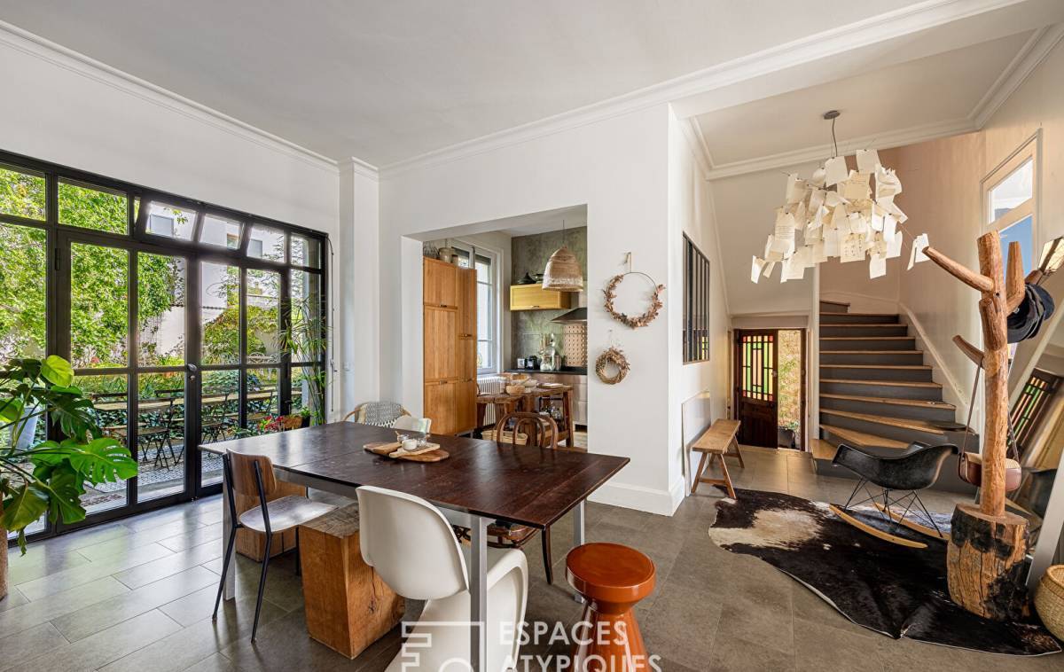 Nestled in the heart of Lyon's 7th arrondissement, 850m from Jean Macé, this charming two-story house of almost 175sqm stands out for its character and understated elegance. A pretty stained-glass door from the Art Deco period adorns the hall with a glass roof, which opens onto a warm and bright space. The living area, consisting of a fully equipped open-plan kitchen and a living/dining room, extends into a tree-lined garden, providing an ideal setting for convivial moments. On the ground floor, a second relaxation lounge with a fireplace can easily be redesigned as a guest bedroom. A shower/laundry room and separate toilet complete this level. Upstairs, a spacious hallway leads to four generously sized bedrooms, including a master suite with a dressing room and fireplace, adding undeniable charm. A bathroom with double sinks and a small window, as well as a wall-mounted toilet, ensure optimal comfort. A second bathroom remains to be fitted out to further personalize this sleeping area. The garden, accessible through a large bay window, offers a haven of peace in the heart of the city, conducive to relaxation. In the basement, a 73sqm cellar offers significant development and storage space. Parking is currently available for rental. The Energy Performance Certificate (DPE) highlights the property's energy efficiency, a guarantee of comfort throughout the year. The contemporary layout and careful decoration accentuate the character of this townhouse, a true invitation to serenity. Ideally located, this unique and welcoming property will appeal to lovers of exceptional properties seeking a peaceful and refined living environment in the heart of Lyon. ENERGY CLASS: E - CLIMATE CLASS: E Estimated average amount of annual energy expenditure for standard use, established from average energy prices indexed for the years 2021, 2022, 2023 (including subscriptions) between EUR3,880 and EUR5,290