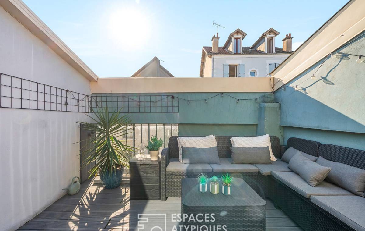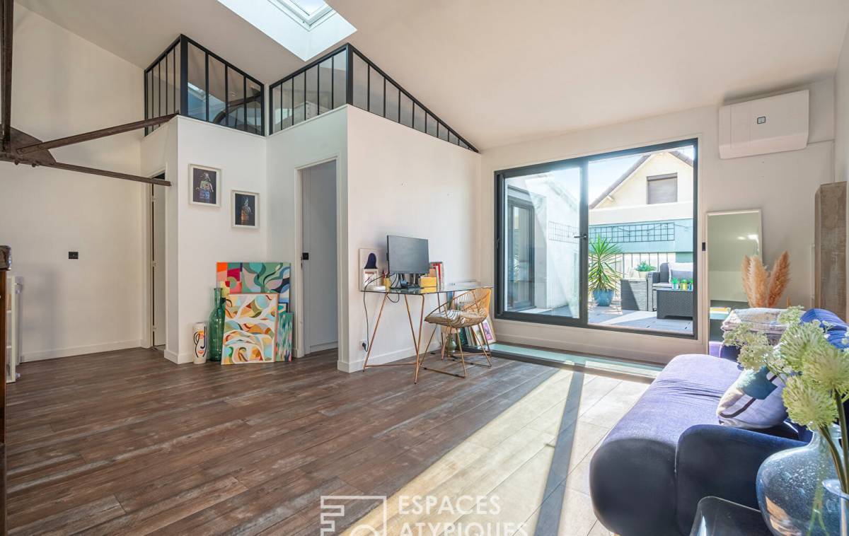 Located in the heart of Maisons-Alfort, just five minutes from the city center, this 145 m² duplex loft (Carrez law) with a terrace is housed in a renovated former printing house.