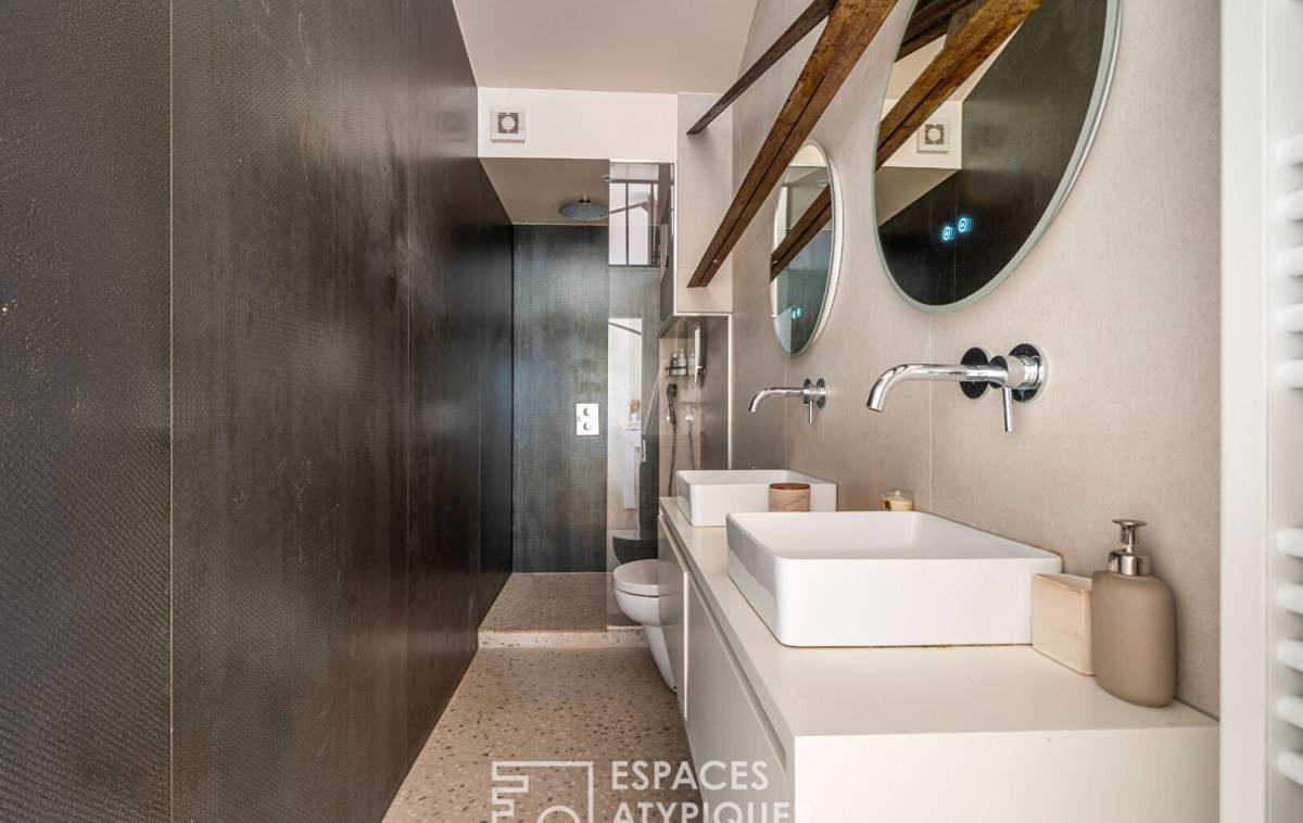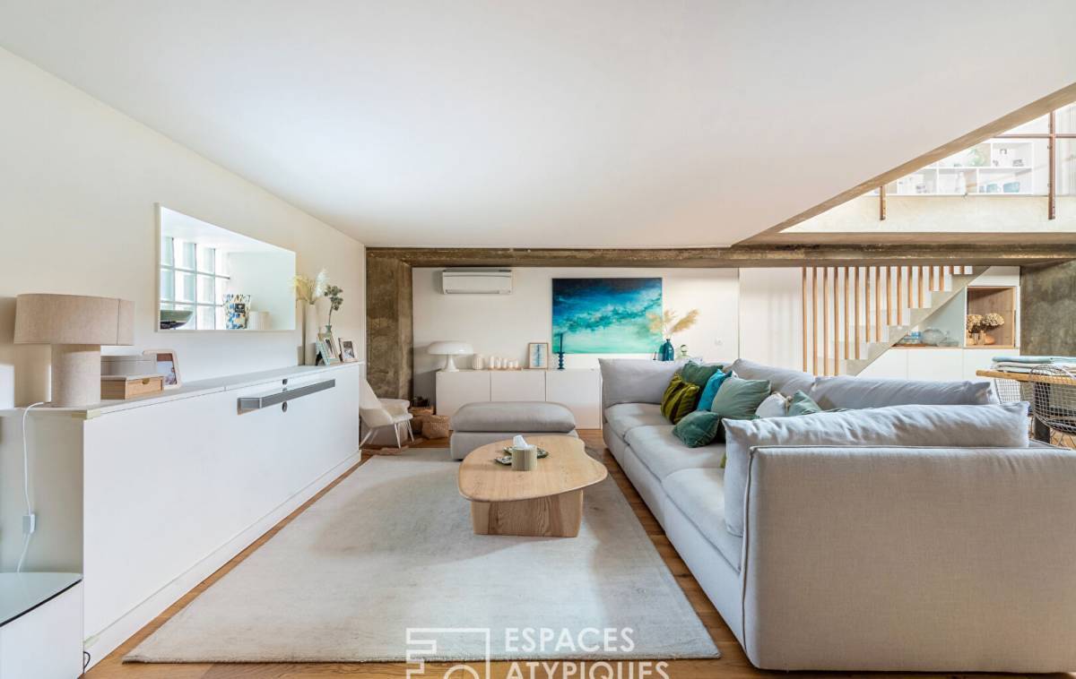 The combination of volumes, materials, and the subtle balance between the raw character and contemporary finishes give this loft a unique and rare character.