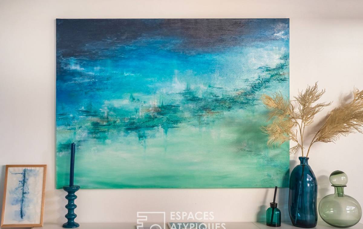 Spanning nearly 30 m², a space currently used as a relaxation area and office opens onto an intimate west-facing terrace, ideal for enjoying the sun.