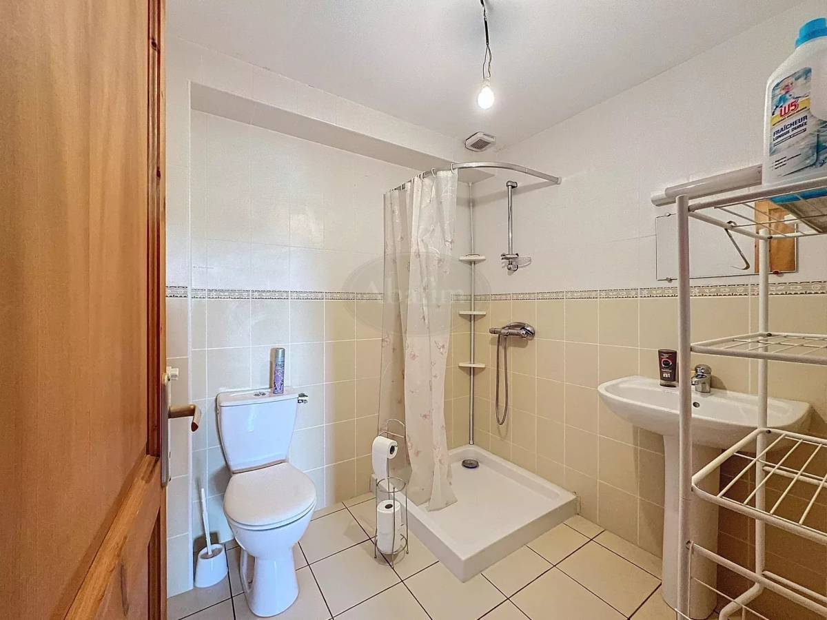 From the living room, a staircase leads to the first floor, landing of 11m², with 2 south-facing bedrooms of 12.36m² and 12.45m² with balcony, a shower room, WC and an attic.