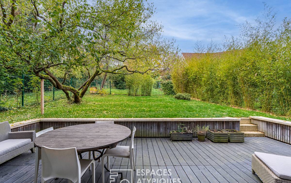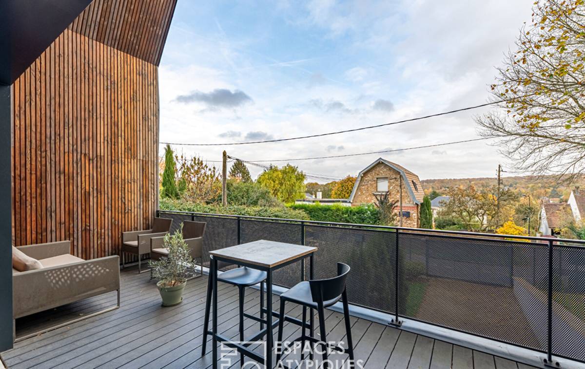 This superb architect-designed house (2018), with its undeniable elegance, is nestled on a hillside in the most sought-after area of Mareil-Marly. It boasts high-end amenities and absolute tranquility, while being just steps from the T13 tram stop. The entrance, accessed via a flight of steps, opens onto a spectacular 58 sq m living space. Bathed in light thanks to its dual aspect, it combines the living room, dining room, and a pleasant open-plan kitchen. This spacious area takes full advantage of the outdoors: on the front side, an 18 sq m extension offers breathtaking views of the surrounding greenery. On the garden side, a 27 sq m rear terrace opens onto a bucolic setting with complete privacy. The first floor is dedicated to comfort and privacy: a landing with built-in wardrobes leads to a 12 sq m (Carrez law) bedroom/office. The 16 sq m (Carrez law) master suite is a true haven of serenity, offering exceptional views, a private bathroom, and an adjoining dressing room. The garden level offers practical amenities and potential for expansion: a laundry room and a 24 sq m storage/utility room. A lovely 13 sq m bedroom, overlooking the garden and its century-old olive tree, adjoins a charming bathroom. A single garage was designed from the outset for easy conversion into an additional bedroom (insulation and electrical outlets already installed - RT 2012 compliant). Off-street parking is also available on the property. This spacious family home is ideally located in an exceptional setting, just steps from the forest. Its adaptable layout allows it to grow with your family. You're sure to fall in love with this recently built home, which combines modern comfort with the charm of a truly unique architectural style! Nursery and primary school: Les Violettes school group, 15-minute walk, 7 minutes by tram 13. Forest International School, 6-minute walk. Marcel Roby Middle School in Saint Germain en Laye, 8 minutes by car, 16 minutes by bike. International high school, 22-minute walk by tram 13. Tram 13, 3-minute walk to Saint Germain en Laye and RER A and Saint Cyr RER C and line N. Line L to Saint Lazare, 15-minute walk. A13 and A14 motorways easily accessible. ENERGY RATING: C / CLIMATE RATING: C. Average energy prices, indexed to the years 2021, 2022, 2023 (including subscriptions) in accordance with the decree of March 31, 2021, in force at the time the Energy Performance Certificate (EPC) was issued.