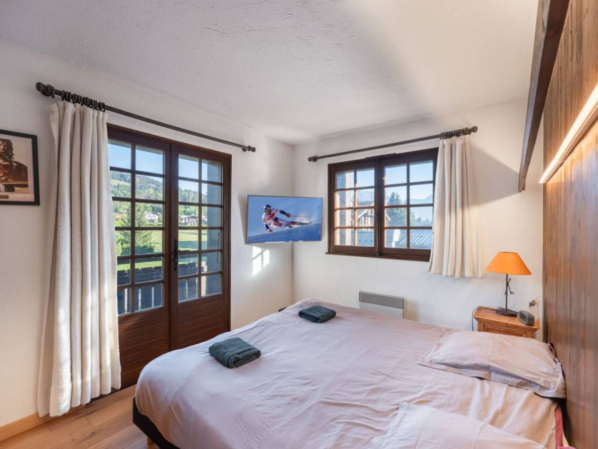 Just a few minutes' walk from the center of Megève, this 110 sq.m duplex apartment (73 sq.m under Carrez law) impresses with its brightness and spacious layout. The large cathedral-style living room, featuring a fireplace, opens onto a south-east facing corner balcony with stunning open views. The independent kitchen is fully equipped. The apartment offers two comfortable bedrooms, one of which has a balcony with beautiful views of the Jaillet, as well as a mezzanine with a TV area and a spacious additional bedroom. Two shower rooms?one on the ground floor and one upstairs?along with separate toilets complete the living spaces. Additional amenities include an underground parking space, a storage cellar, and a ski locker. This property is ideal as a second home in Megève, with excellent renovation potential.