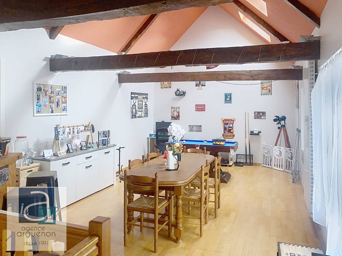 On the ground floor, you shall discover a functional, fitted and equipped kitchen, a bedroom, and a toilet. A few steps lead to the true heart of the property: a magnificent, light-filled living room of 55 sqm, ideal for entertaining family and friends. Upstairs, you'll find a 14 sq m bedroom, a modern shower room, and a separate toilet. The top floor reveals a spacious 18 sq m bedroom, perfect as a master suite, an office, or a teenager's room. To complete this property, the house benefits from cellars, an attic, a courtyard, and, most notably, a 140 sq m outbuilding with a sink and toilet. This rare feature offers multiple possibilities: workshop, storage, professional activity, leisure space, etc. A rare find in the village center, combining an ideal location, generous living areas, and incredible potential. Don't miss out! (5.97 % fees incl. VAT at the buyer's expense.)