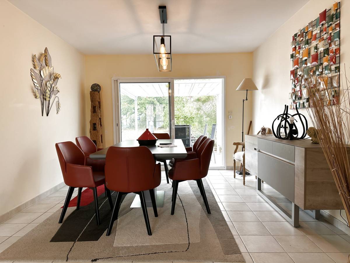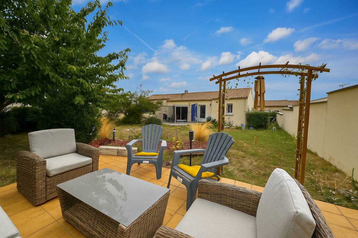 MESCHERS-SUR-GIRONDE (17) - Located in a quiet residential area, this pretty house from 2006 offers single-story living on 115 m2 of living space. The bright living room and its open kitchen overlook the garden and the pergola.