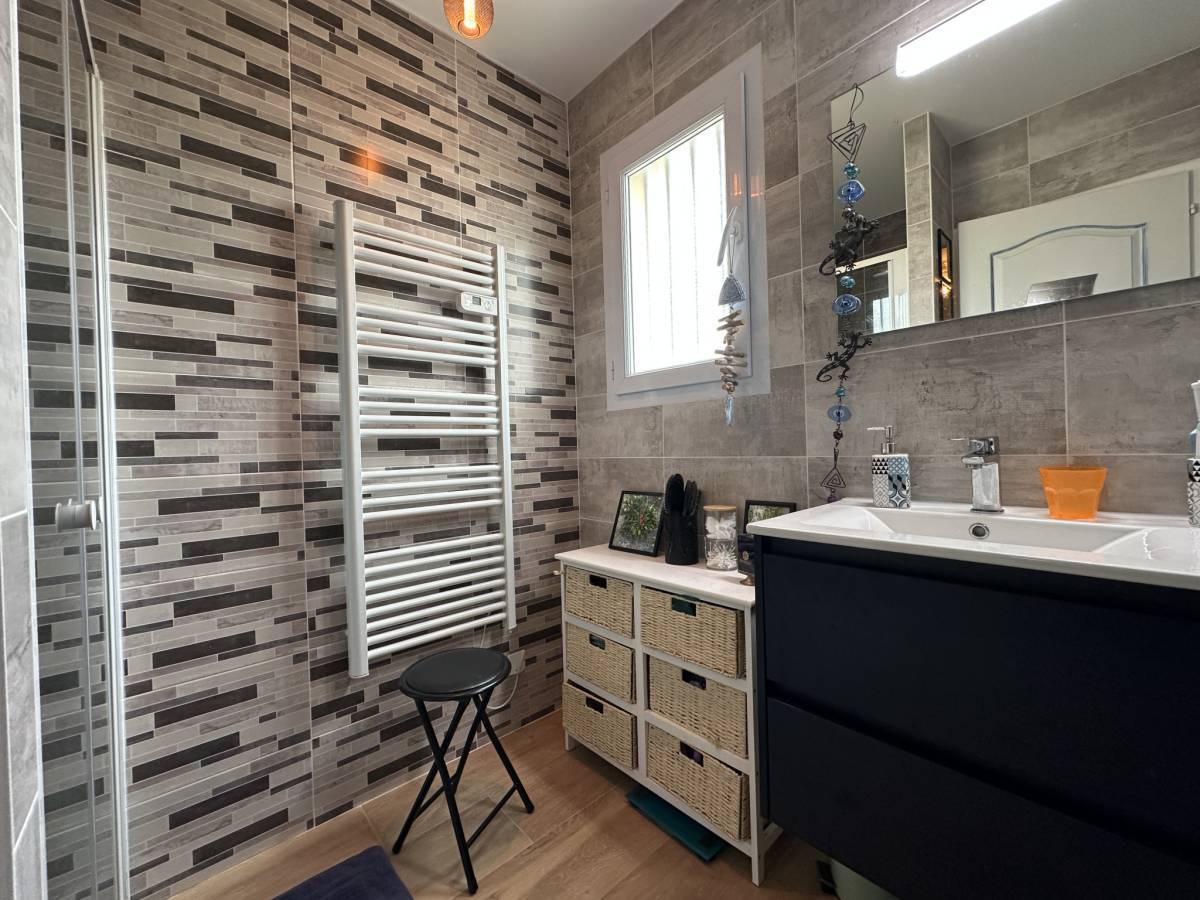 The well-appointed sleeping area is composed of four bedrooms and a bathroom. Attached garage and large storeroom with second shower. The rear garden, sheltered from view, benefits from a very pleasant western exposure.