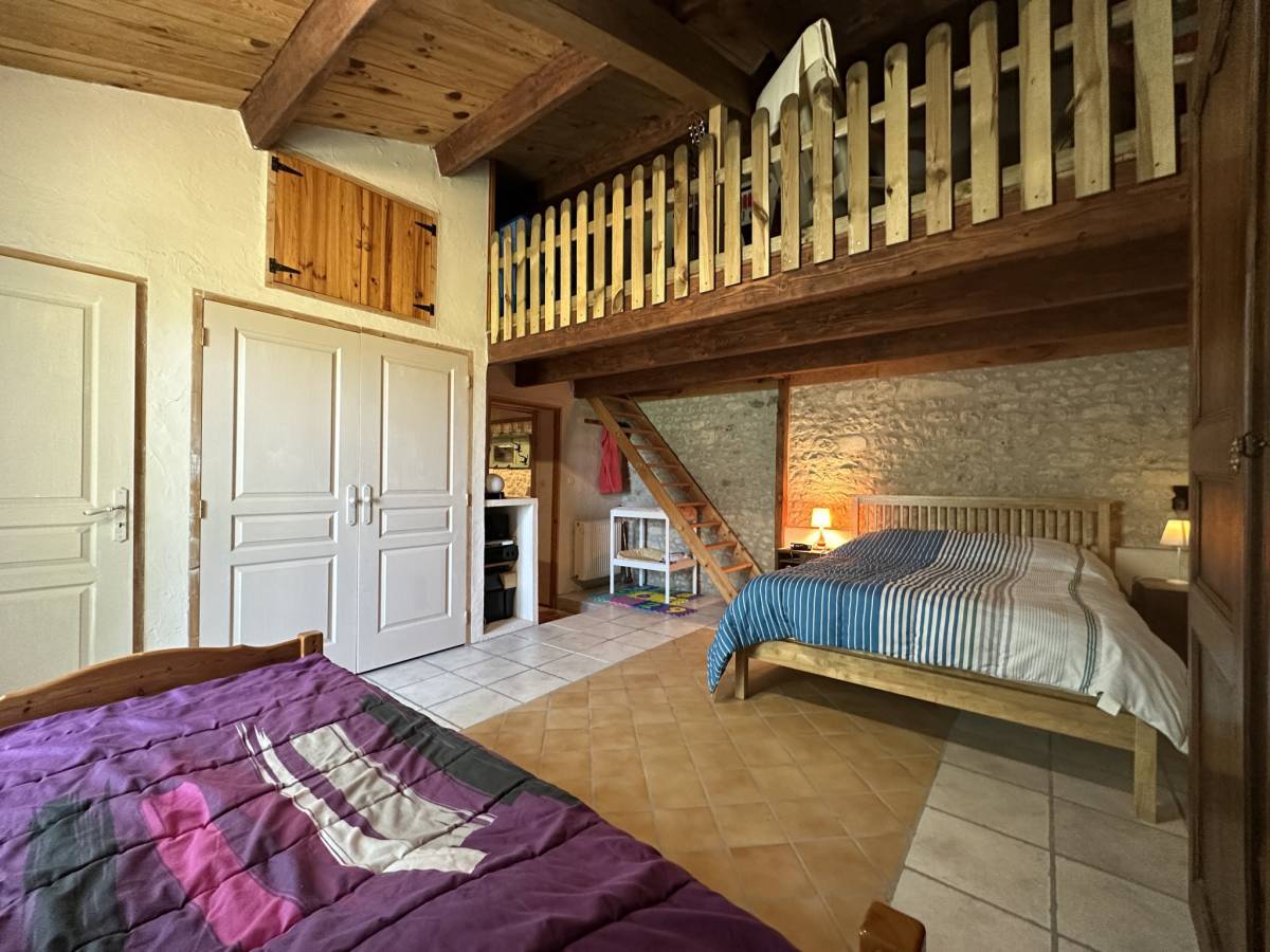 The imposing entrance hall sets the tone and authentic character of the place. It distributes a very convivial kitchen with fireplace and two cozy living rooms that invite you to relax. A large bedroom with a comfortable mezzanine is arranged like a small studio.