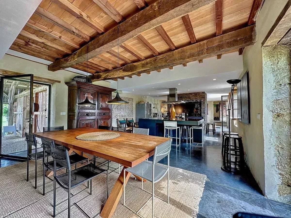 Nestled in the countryside between the towns of Castelnau-Magnoac and Mirande is this magnificently and entirely restored 18th century farmhouse including six bedrooms, swimming pool, padel court and three hectares of grounds.
