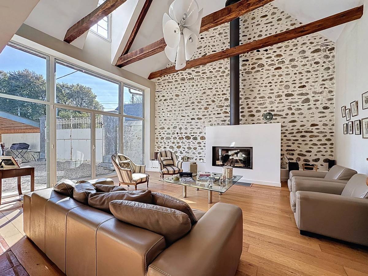 As soon as you enter, you'll discover a vast 19 m² hallway that leads, on the right, to the 56 m² living room, bathed in light thanks to its very large windows and cathedral ceiling, where a beautiful contemporary fireplace takes pride of place.