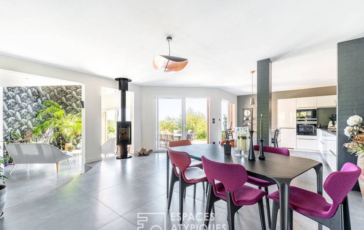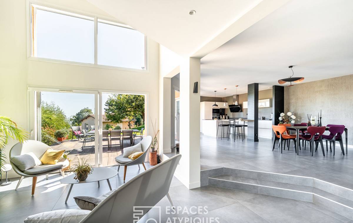 Generous volumes, clean lines and fluid circulation define this contemporary achievement, designed as a harmonious, soothing living space resolutely turned towards the outside.