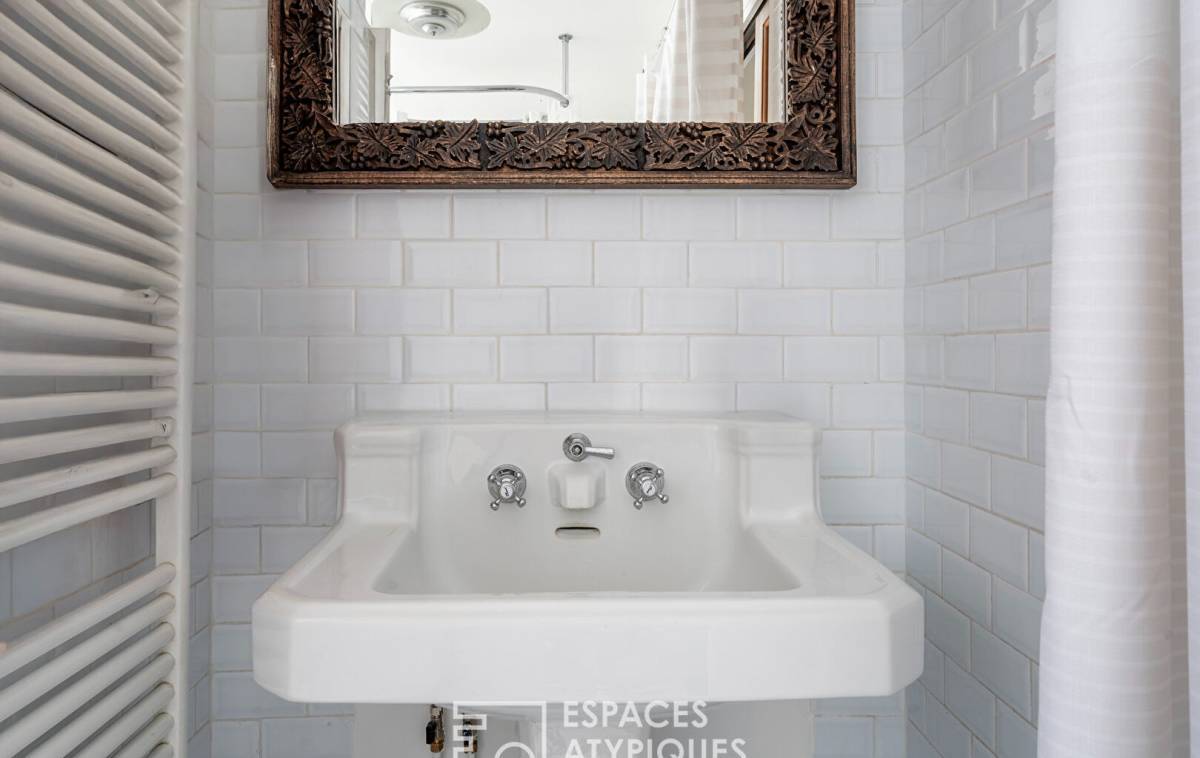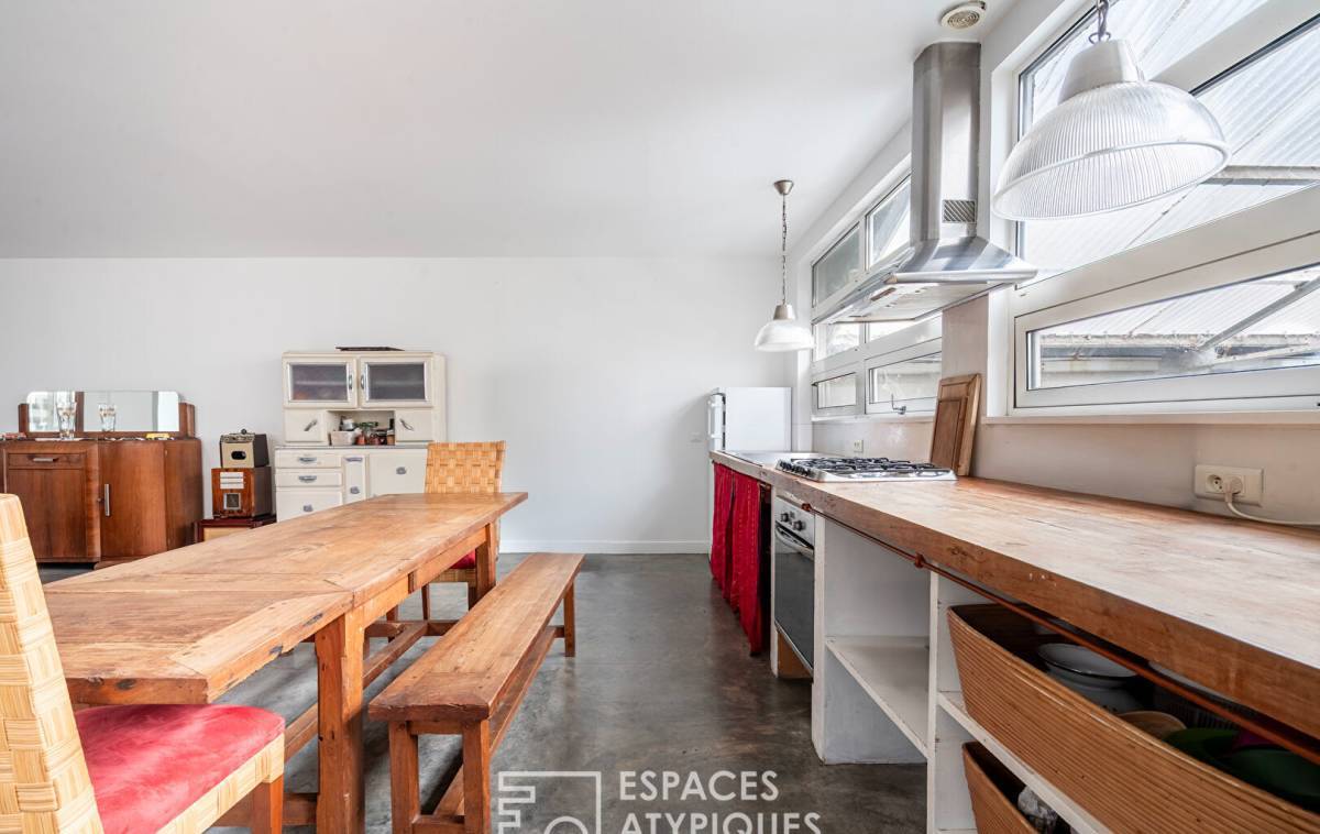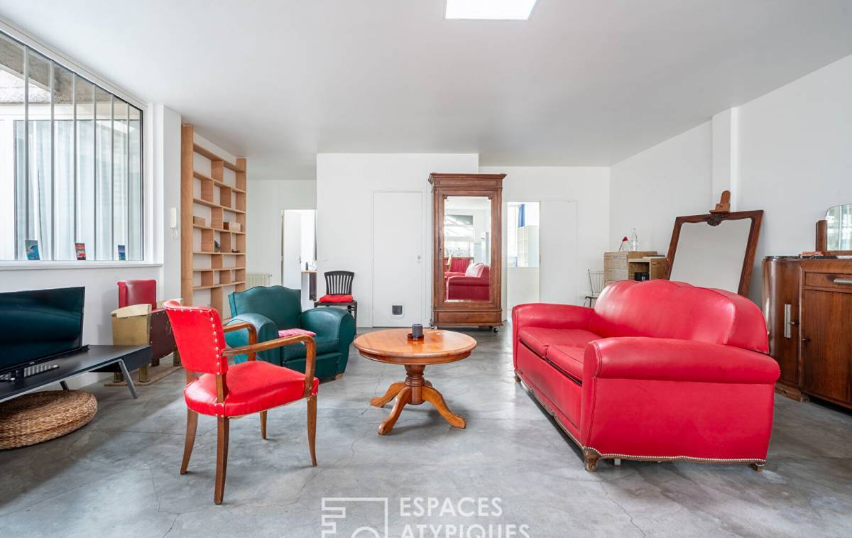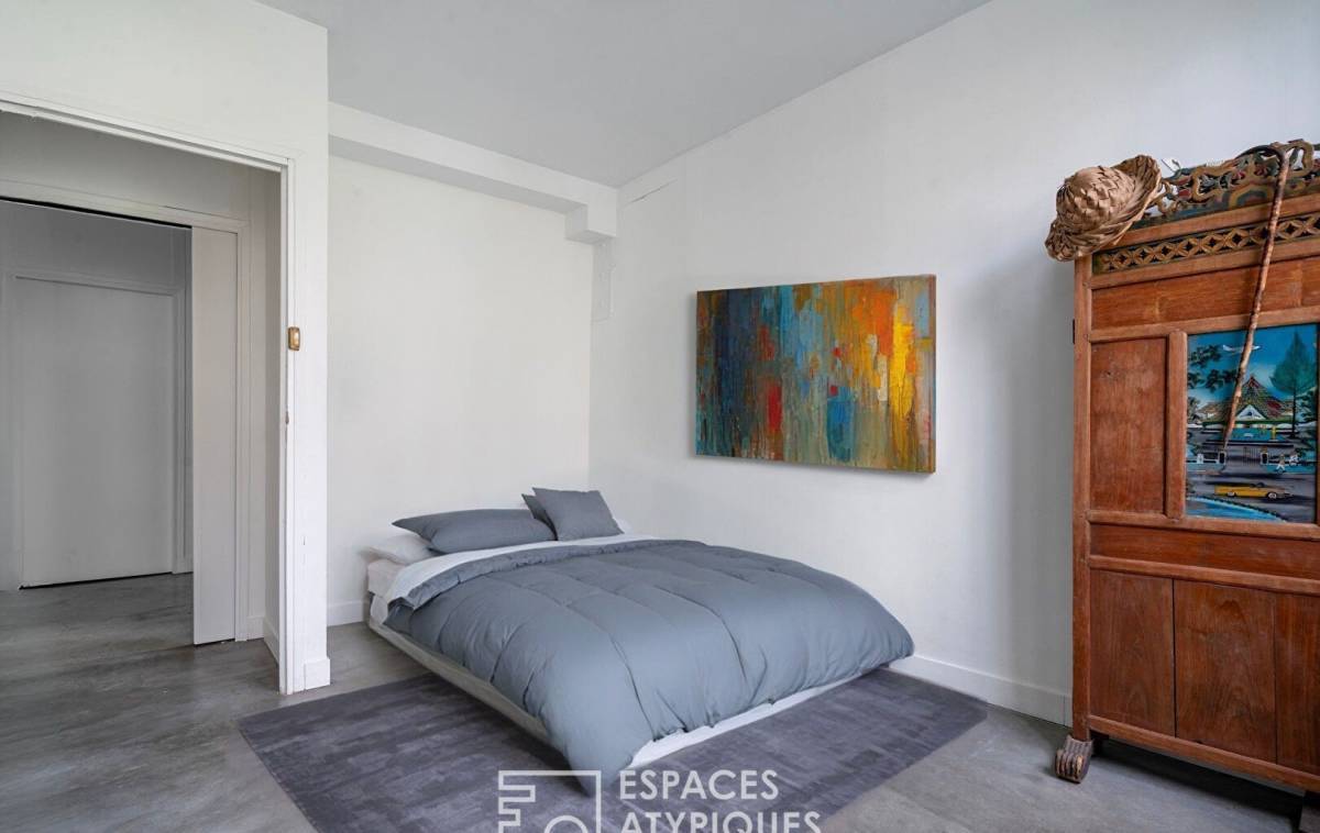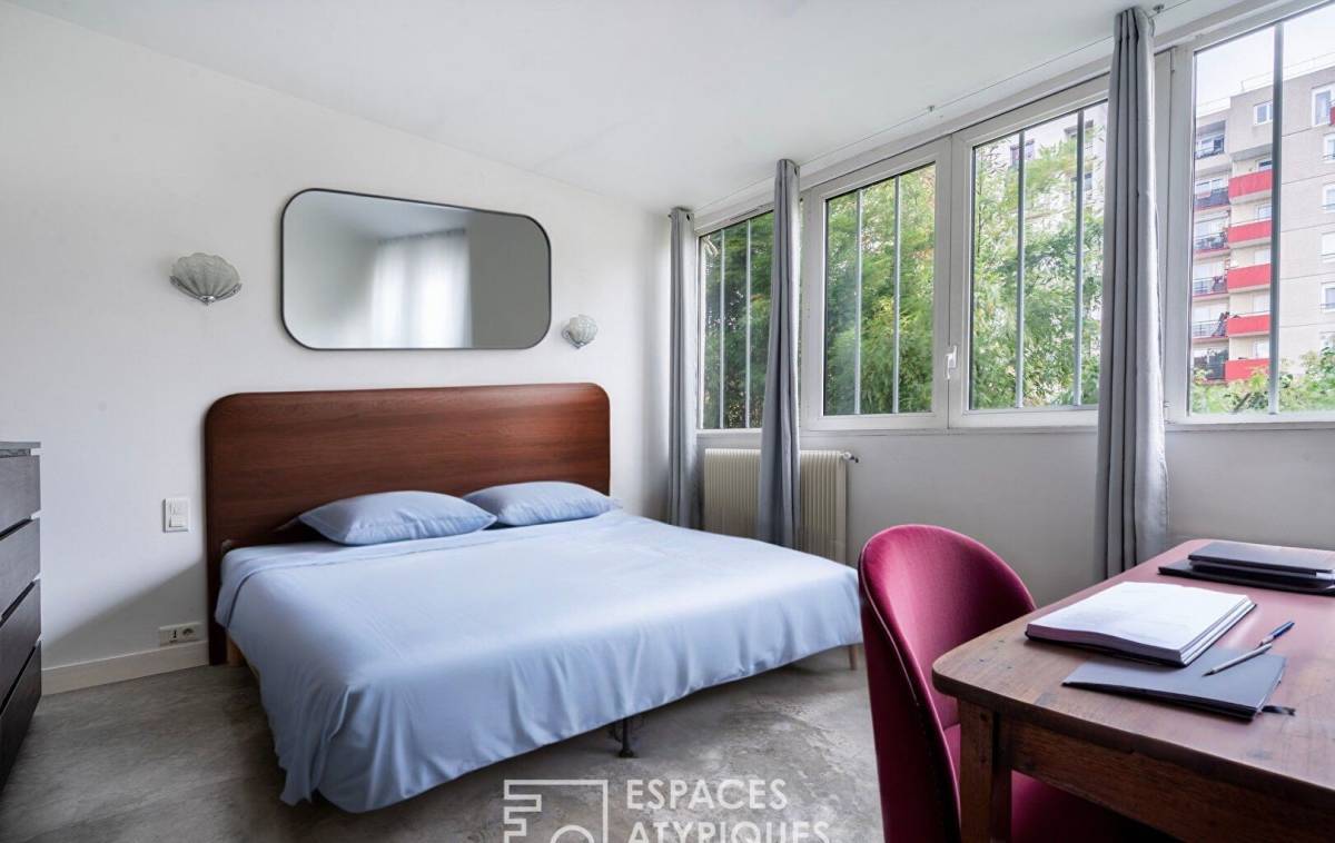 Nestled on the first floor of a small condominium converted from a former factory, it combines industrial charm, light, and tranquility in a bright and harmonious atmosphere.