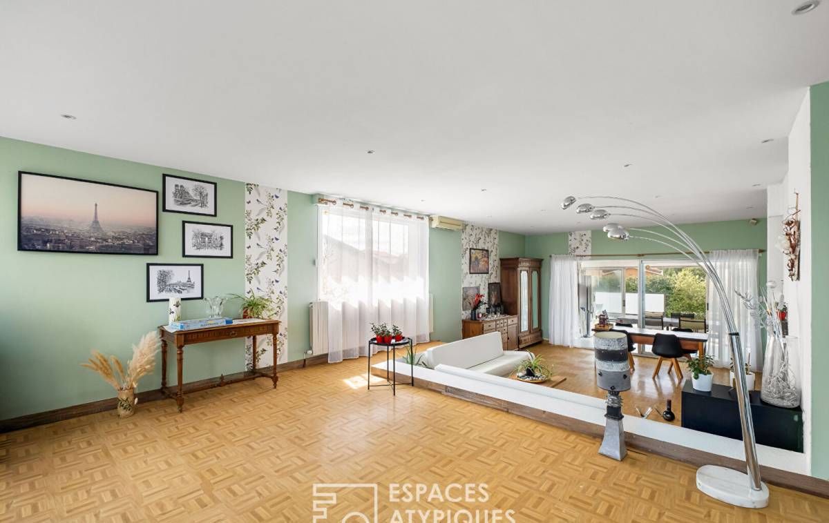 Nestled in the heart of Beauvallon, in the sought-after town of Saint-Jean-de-Touslas, this 1980s architect-designed house offers 218sqm of living space, complemented by a partially finished 120sqm basement. Built on a plot of approximately 990sqm, it offers generous volumes and a layout designed to accommodate family life. It consists of a bright living room with a fireplace, a single-story master suite with a dressing room, an office, and four bedrooms upstairs. The layout allows for the creation of up to seven bedrooms depending on needs. The interior spaces are captivating for their functional layout and architectural character. The vast reception room opens onto a light-filled veranda, creating a seamless connection with the outdoors. The master suite on the ground floor is a true cocoon, while the upper floor offers beautiful, comfortable bedrooms, an office space with a sleeping area, and the possibility of creating a gym or leisure area in the basement. The work already undertaken suggests great potential for development and adaptation depending on the project. The exteriors are organized around a landscaped garden with a vegetable patch, a welcoming terrace, and a swimming pool, ideal for relaxing moments. A pizza oven completes this space designed for entertaining. The garage and annexes enhance the practicality of the place. The calm and green residential environment underlines the peaceful character of this family home. This rare property combines spaciousness, 1980s charm, and sought-after amenities. An atypical and unique house, it stands out for its combination of functional spaces, its development potential, and its preserved setting. ENERGY CLASS: D / CLIMATE CLASS: D Estimated average amount of annual energy expenditure for standard use, indexed to the years 2021, 2022, 2023: between EUR4,560 and EUR6,230 (subscription included)