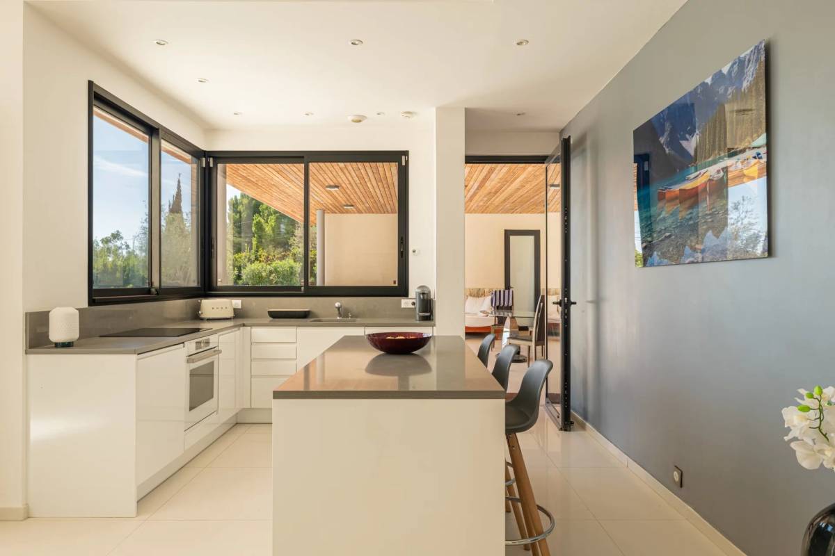 The large terrace with infinity pool overlooks breathtaking views of the Mediterranean Sea and surrounding greenery – the perfect setting for relaxation or refined entertaining. A separate guest suite with its own entrance, bathroom, and toilet ensures complete independence and exclusivity for visitors.