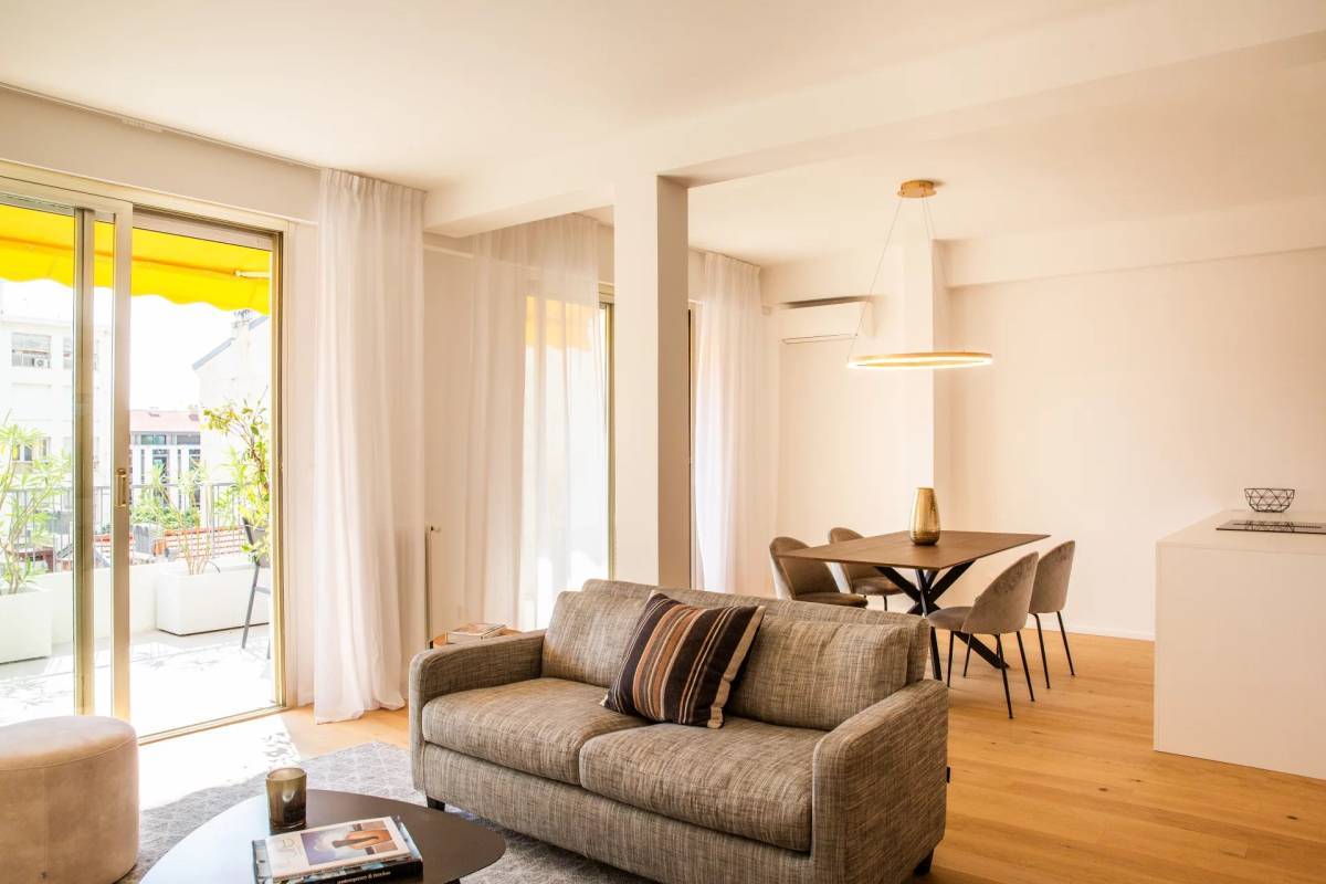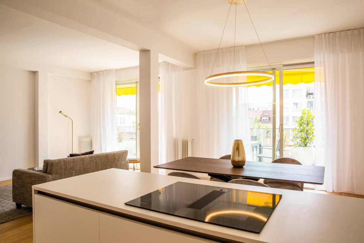 Located on a high floor of a modern building designed by architect René Livieri (1963), this beautiful 4-room apartment of 95 m² stands out with its large open-sky terrace of 31 m² facing due south, in the heart of the highly sought-after Musiciens district, just steps from Boulevard Victor Hugo and Avenue Jean Médecin.