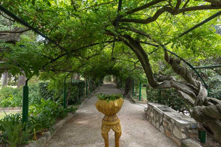 This late 19th-early 20th-century residence welcomes you to a vast park planted with palm trees, enhanced by a fountain and a majestic terrace overlooking the green space, while two Greek-style temples add a touch of charm.