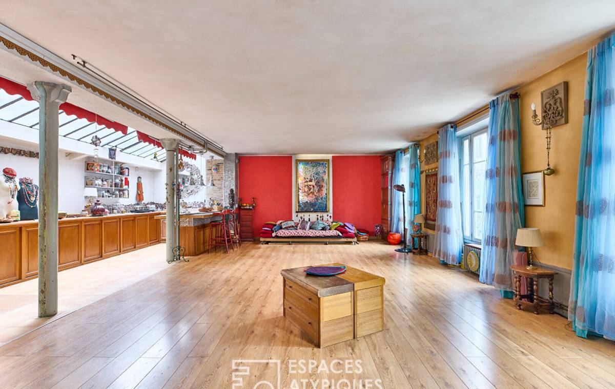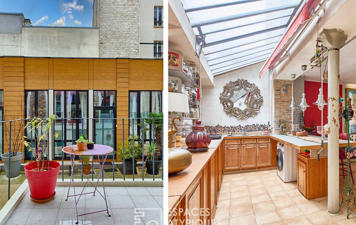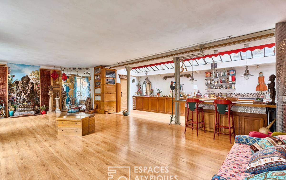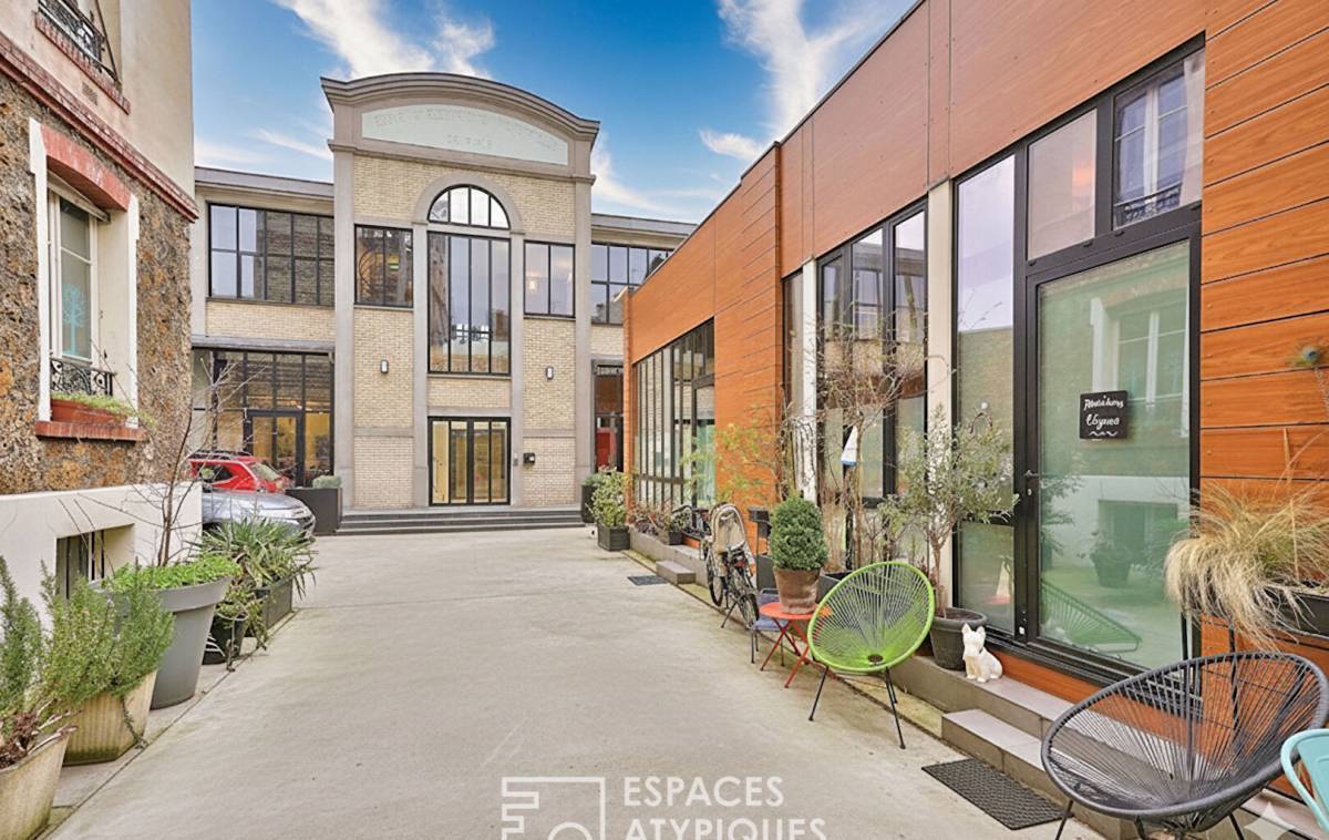 Located near Place Albert Kahn, just a few steps from the shops of Jules Joffrin, in a beautiful condominium, in a building renovated in 2009 and completely renovated in 2022, this loft-style duplex of 106.53 m2 (104.19 m2 Carrez) now combines a relaxation and living space.