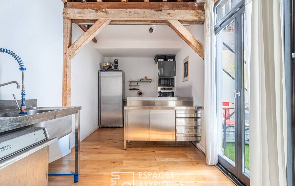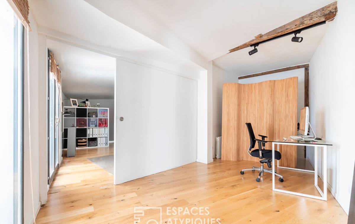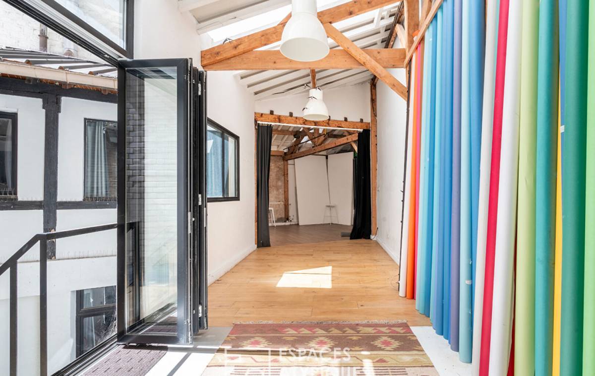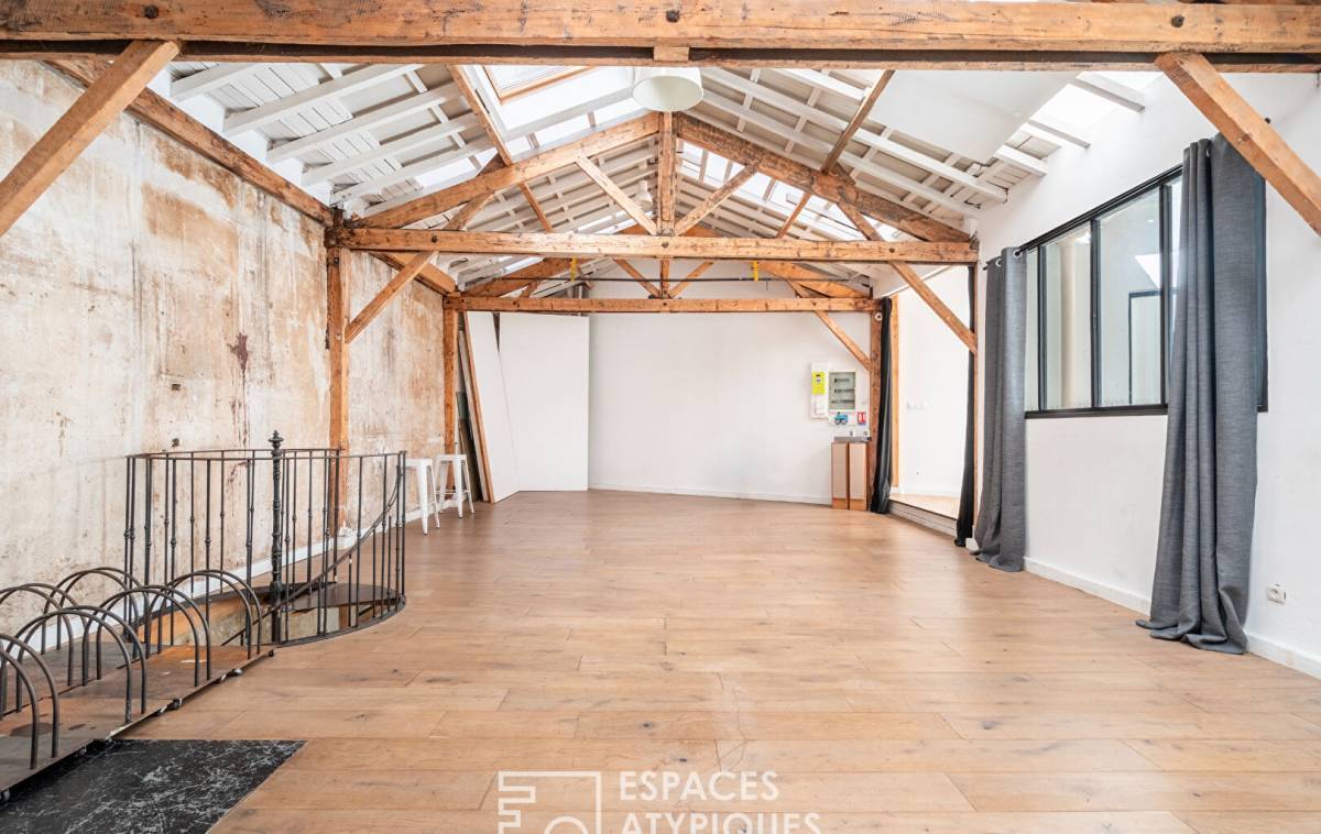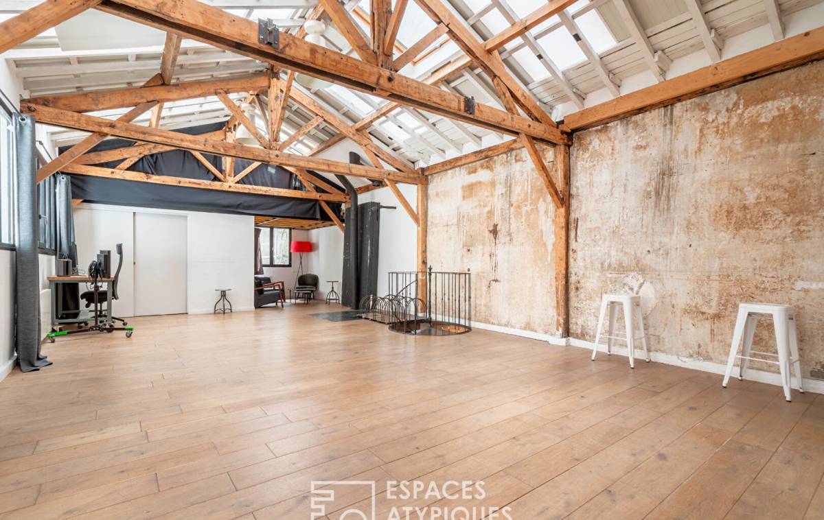 Located in the Saint-Blaise district, this unique 244 m² (224.37 m² Carrez law) space, created by the transformation of a former carpentry workshop into a photography studio, subtly blends industrial style with contemporary comfort. It benefits from a mixed residential and commercial use and is spread over two levels, each floor offering access to a 20 m² courtyard for exclusive use.