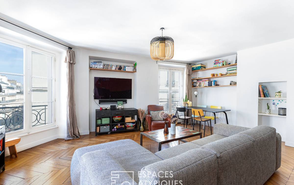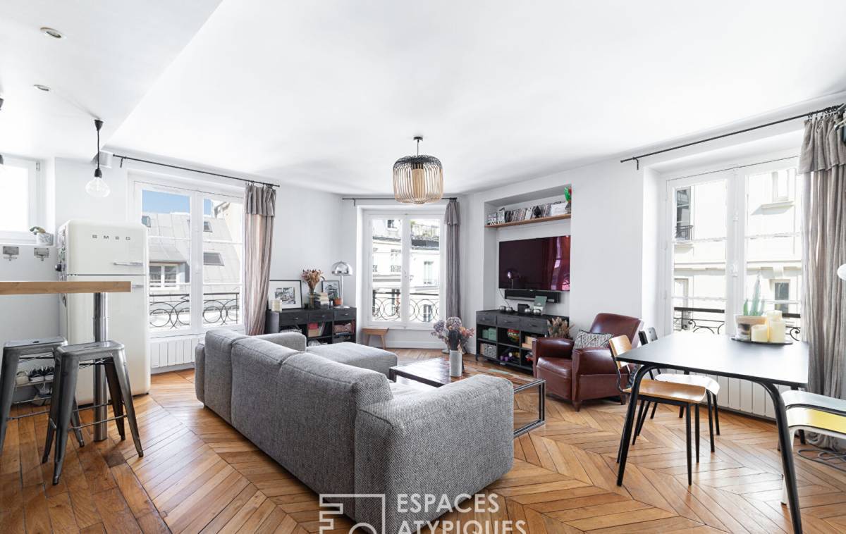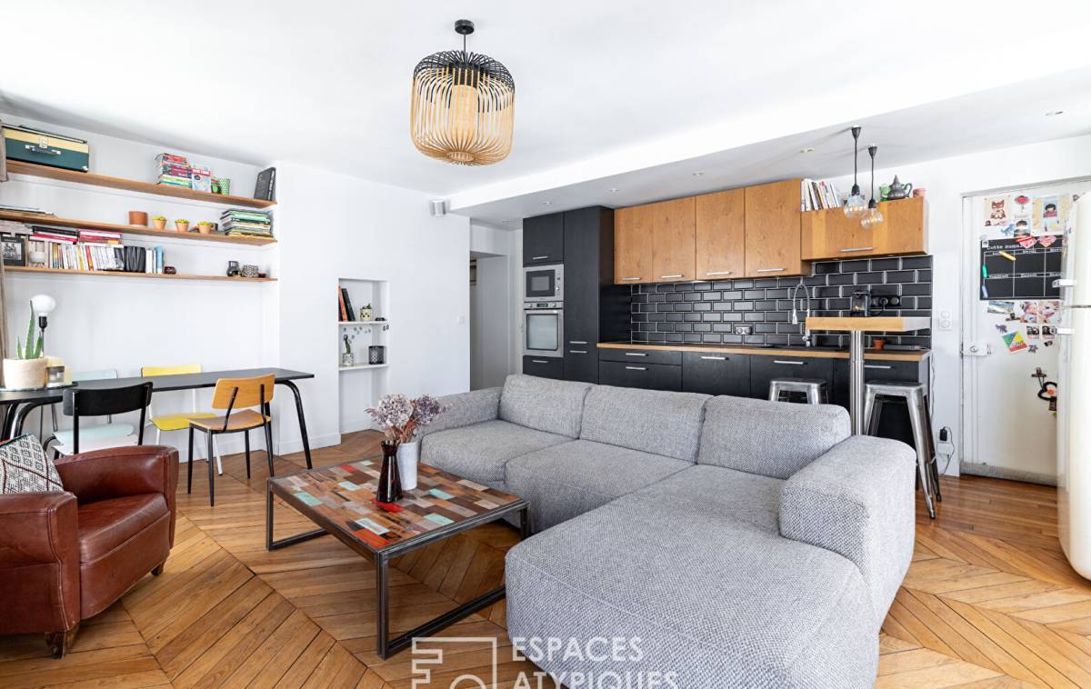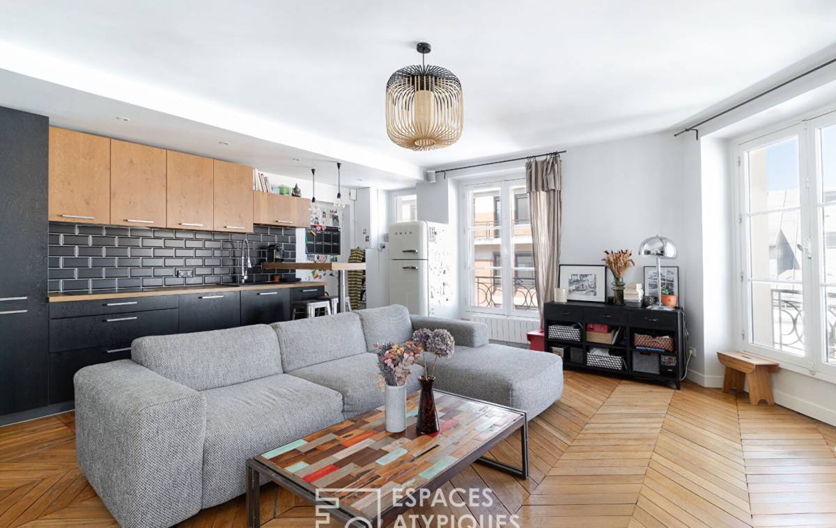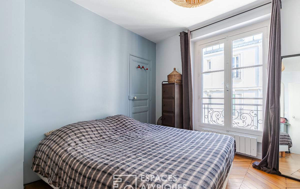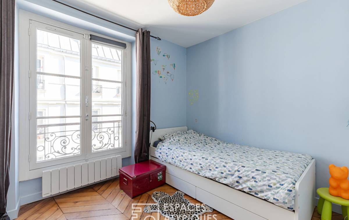 A bright, warm and resolutely Parisian place to live, in a building on a human scale, in the heart of a dynamic, well-served and booming neighborhood.