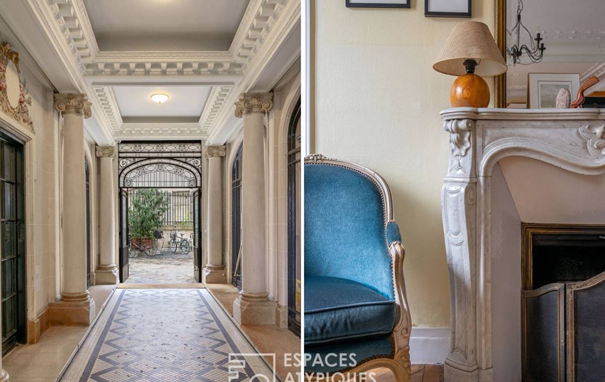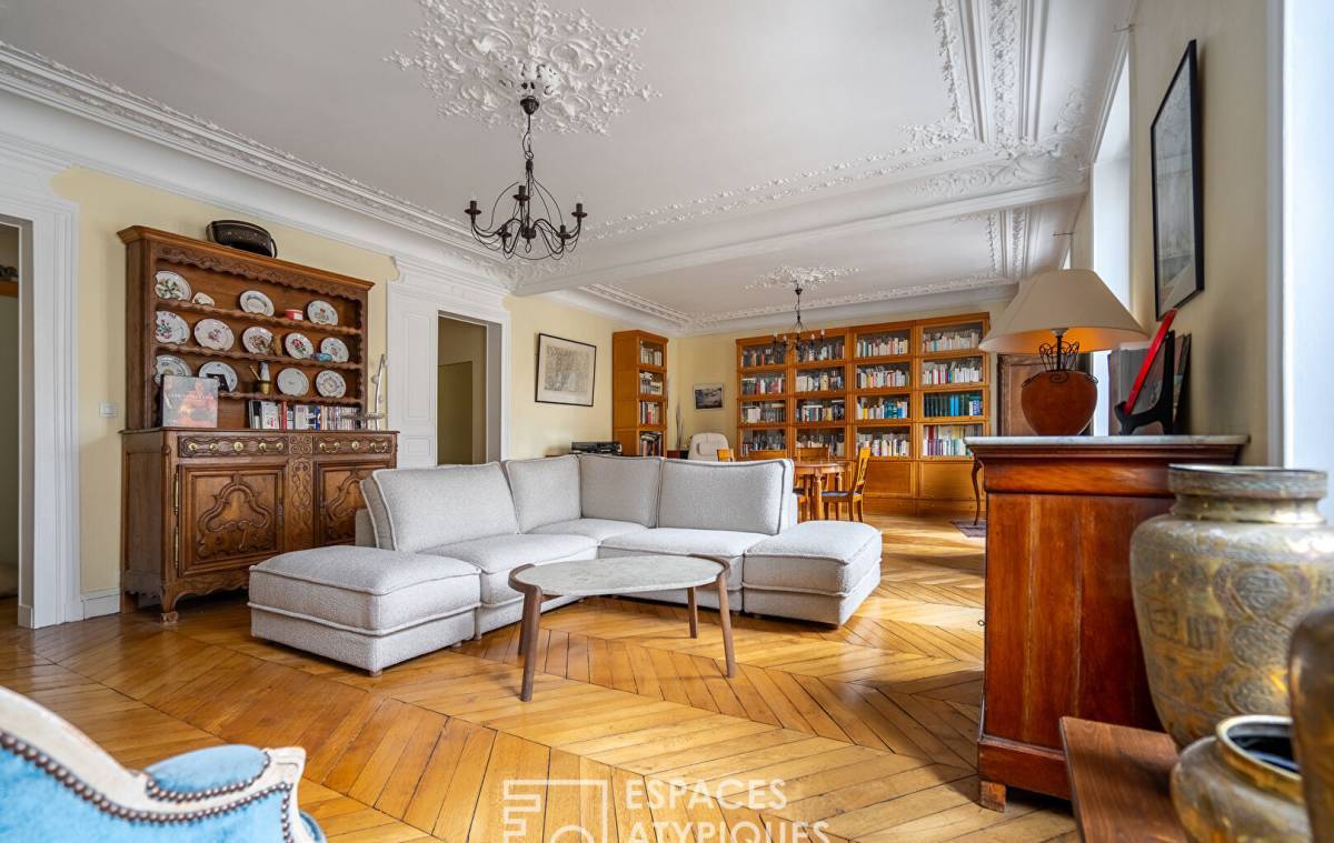 This characterful bourgeois apartment of 102.65 m² (100.60 m² Carrez law) is located on the 3rd floor with elevator of a beautiful late 19th-century building.