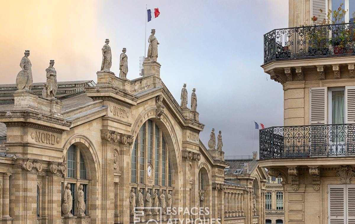 It enjoys a beautiful view of the Gare du Nord facade, an architectural masterpiece by Jacques Hittorff, who is also credited with creating this building with its elegant common areas: columns, mosaic floors, and ornate ironwork.