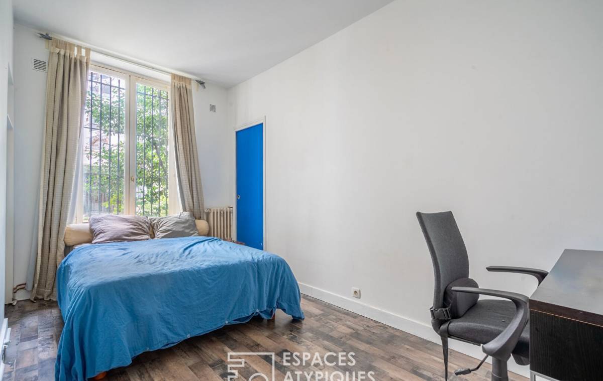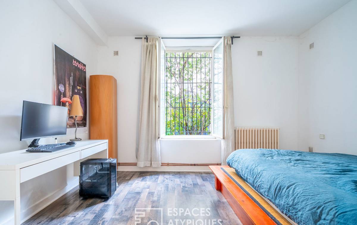 In the immediate vicinity of the Saint-Martin canal and the Saint-Louis hospital, this former workshop of 168.14 m², transformed into a home, is located in the quiet of a pretty paved courtyard.