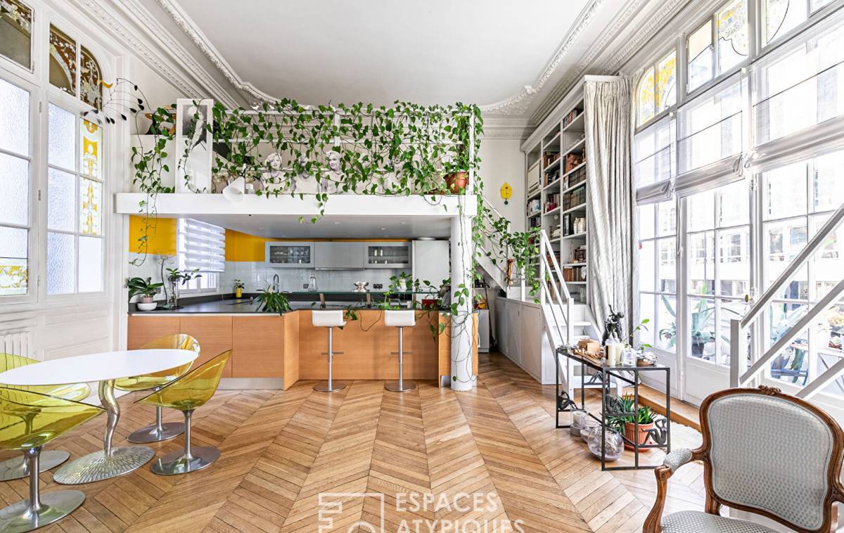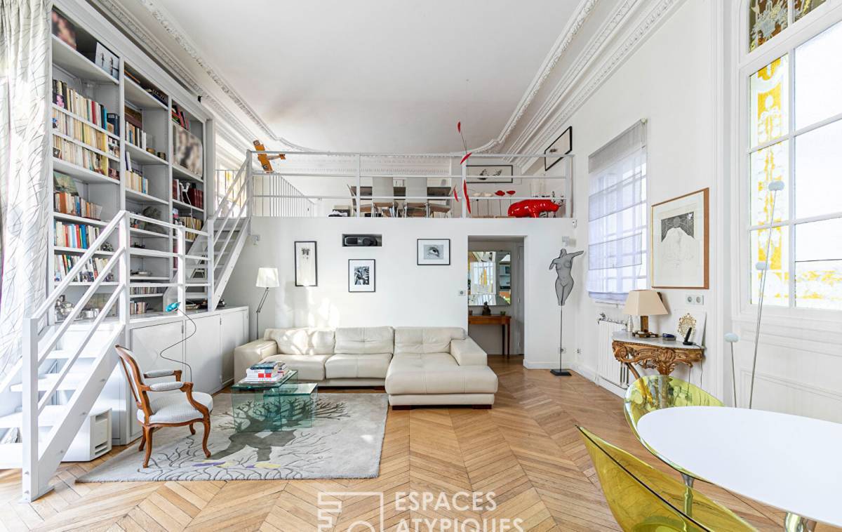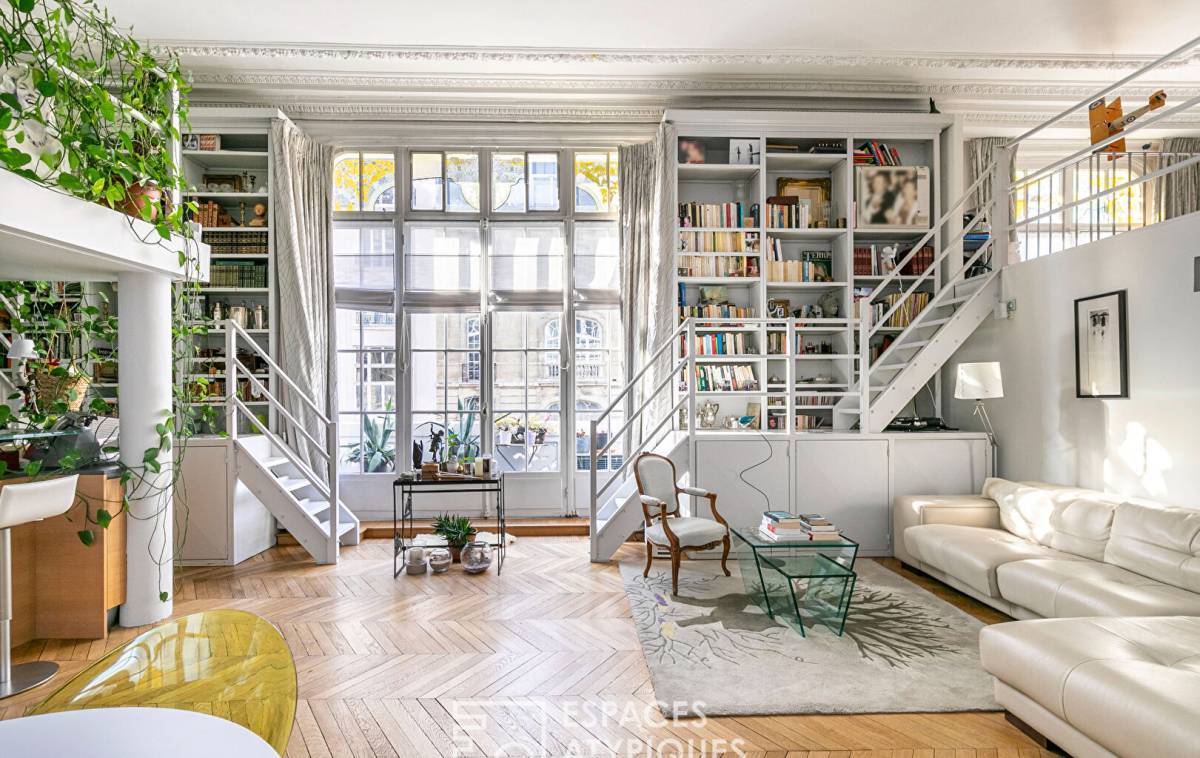 This crossing apartment bathed in light will appeal to lovers of exceptional properties looking for an elegant and unique living environment, in a building with undeniable character.