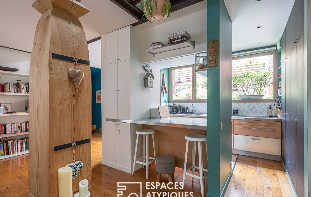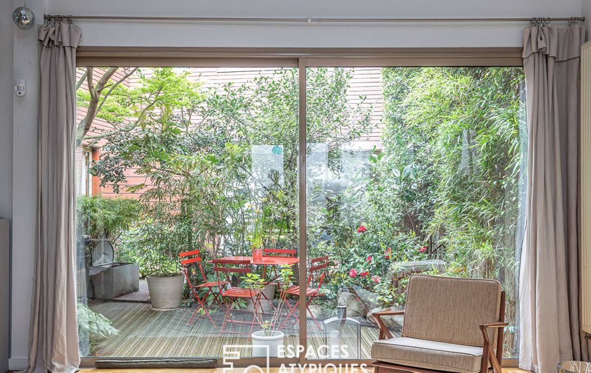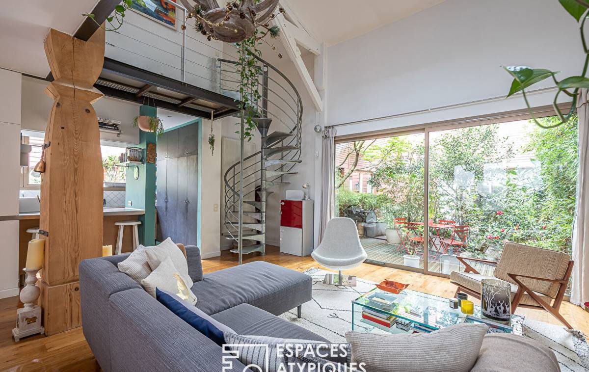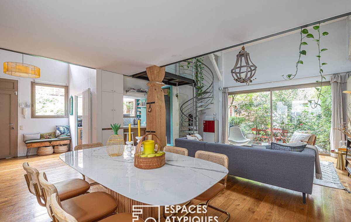 Located between the Belleville park and the Père-Lachaise cemetery, in a former biscuit factory, completely rehabilitated and divided into several lots, this house-style duplex of 185.05sqm Carrez benefits from a 22sqm terrace for exclusive use. The entrance to the ground floor opens onto a living room with semi-open kitchen totaling 57sqm under 5.70 meters in height, bordered by the terrace. A hallway leads to a master bedroom, a shower room with toilet and a laundry room. A second hallway with storage leads to a space dedicated to children, made up of two bedrooms sharing a bathroom and shower with toilet. From the living room, a metal helical staircase leads to a 30sqm mezzanine (23.14sqm Carrez) made up of an office and a relaxation area, all 2.75 meters high lit by roof windows. Convertible attics offer multiple development possibilities. Benefiting from absolute calm, this wooden-framed family living space has been redesigned in a resolutely contemporary style suitable for entertaining. A private bicycle/stroller room of almost 7sqm, as well as a car parking space in the basement in a nearby condominium complete this property. Subject to co-ownership status. Photos available on request Metros: Jourdain, Gambetta and Ménilmontant ENERGY CLASS: D / CLIMATE CLASS: D. Estimated average amount of annual energy expenditure for standard use, established based on energy prices for the year 2021: between EUR1,850 and EUR2,550 Information on the risks to which this property is exposed is available on the Géorisks website: RSAC: Paris
