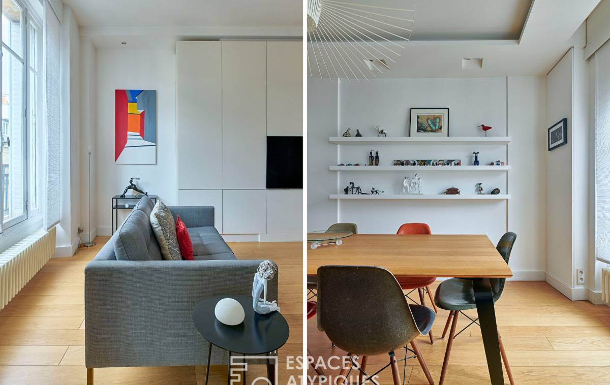 The entrance reveals a 62 sqm space bathed in light, thanks to a double East/West exposure, which accentuates the feeling of space.