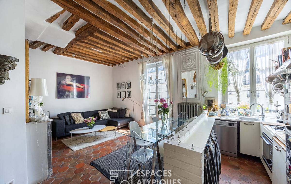 Just a stone's throw from Rue de Bretagne and the legendary Place des Vosges, lies a duplex apartment with a unique atmosphere.