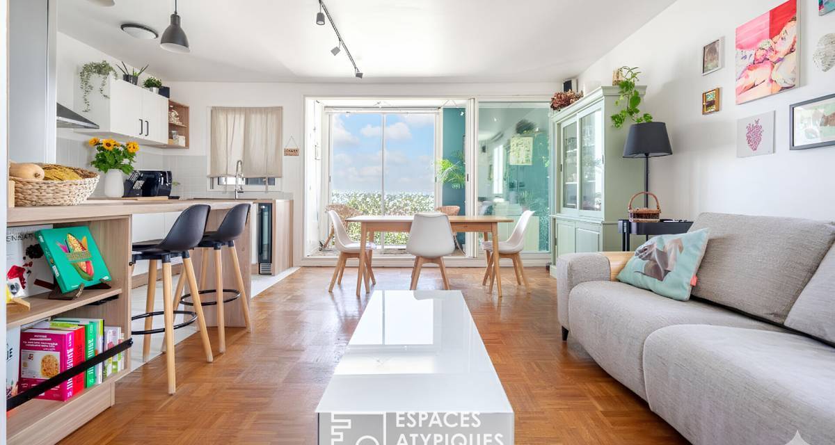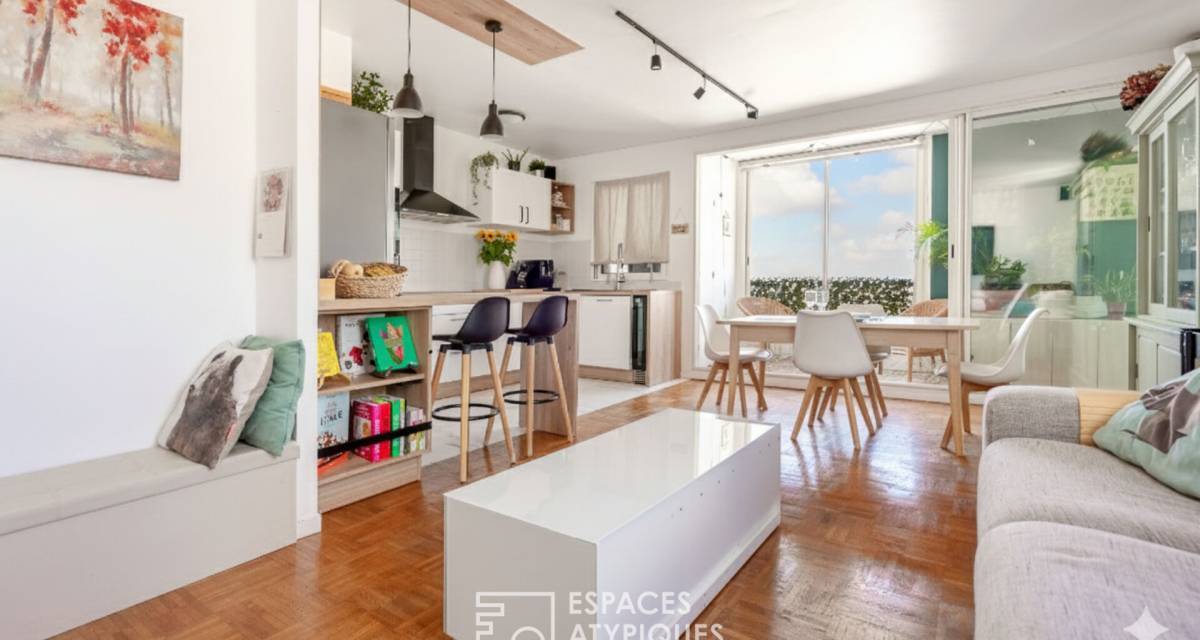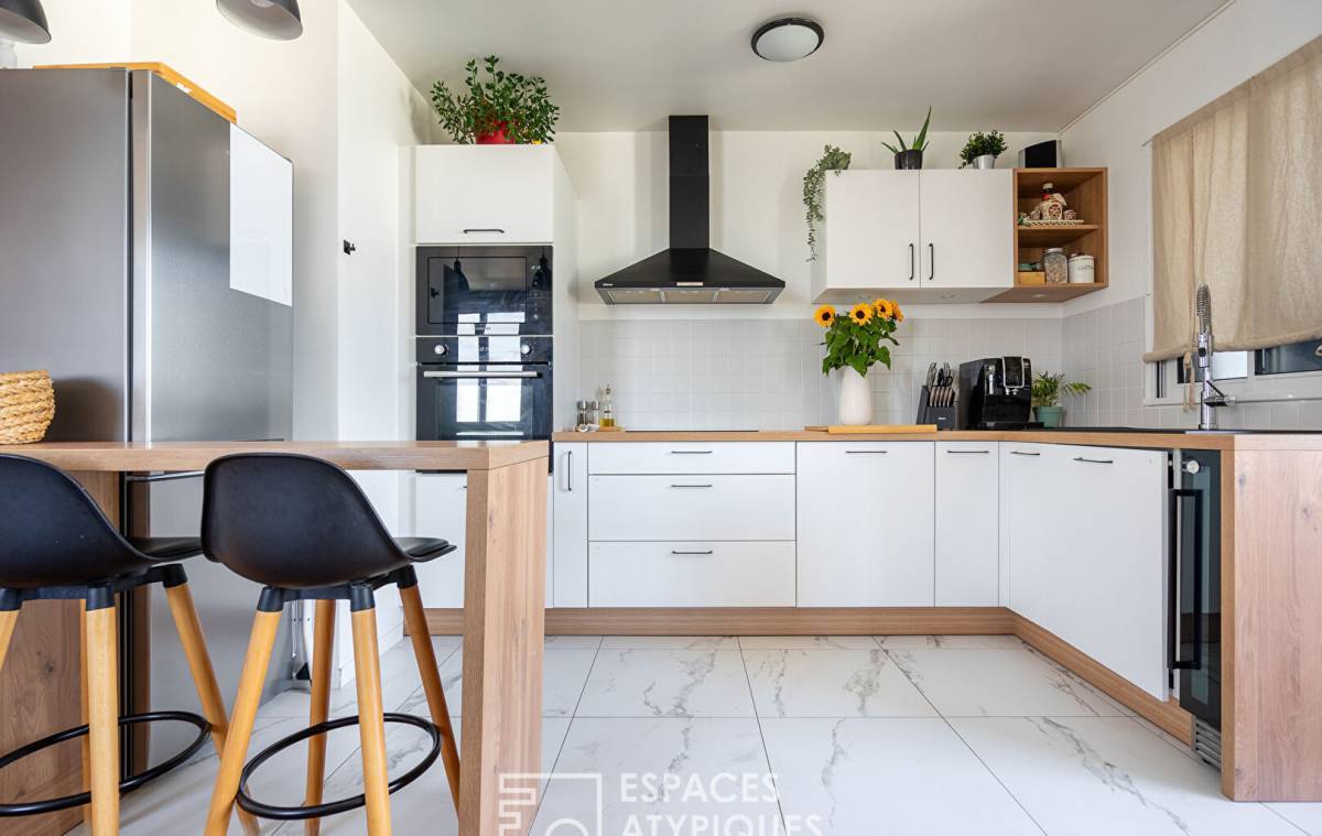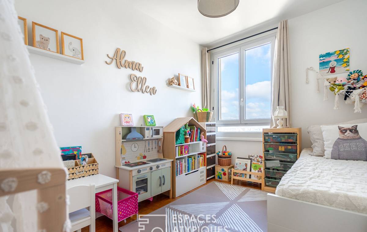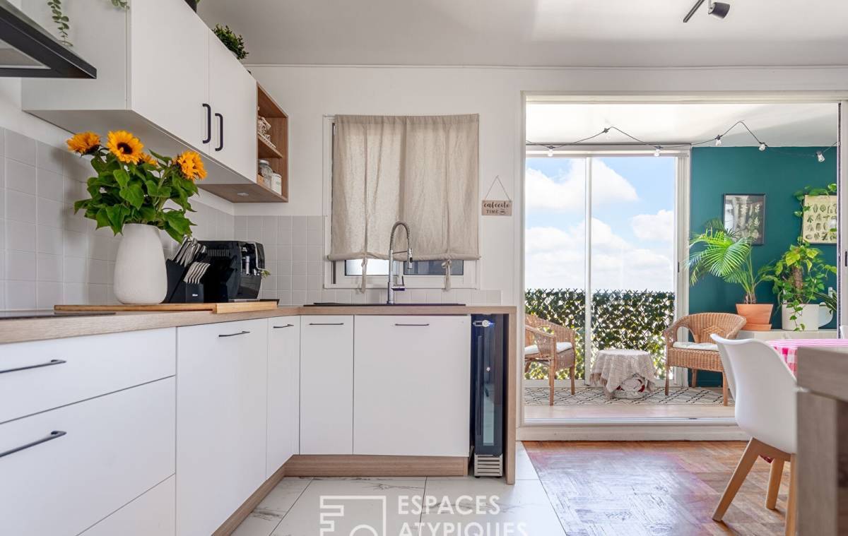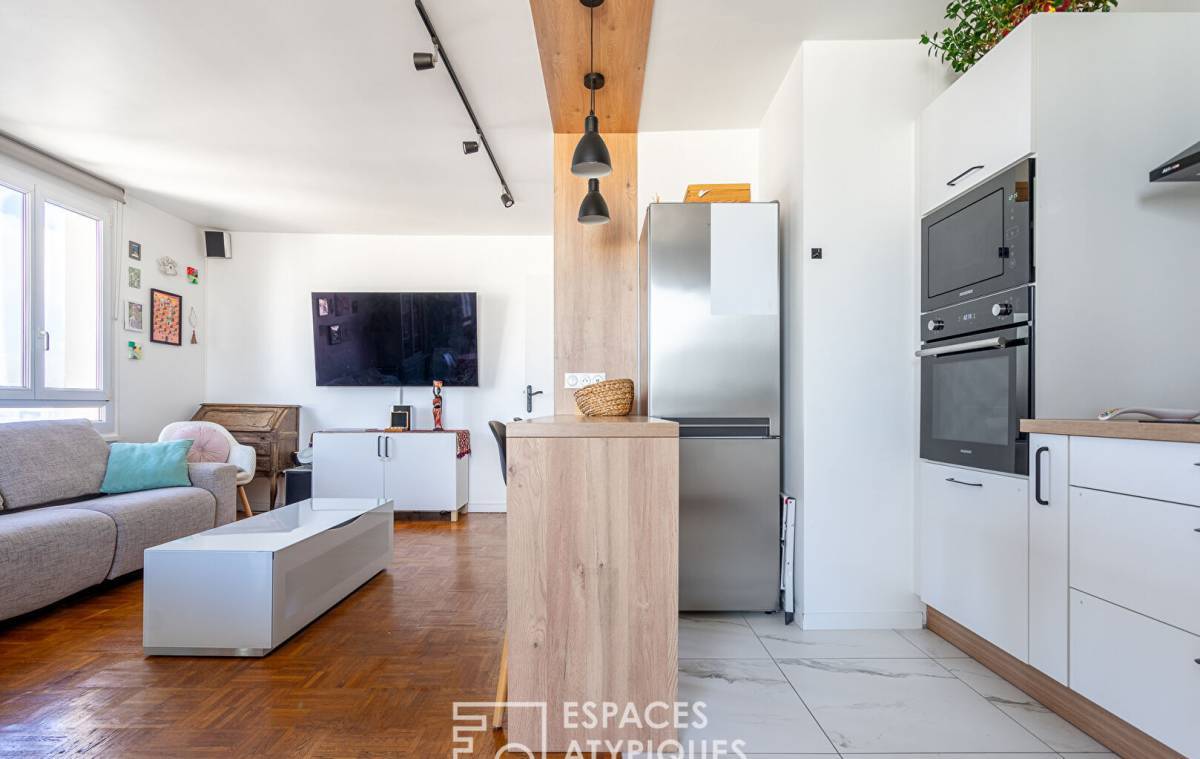 Completely redesigned, the nearly 29 sq m living space features a bright living room and a fully equipped open-plan kitchen. Extending from the living room is a 9 sq m loggia that can be adapted to suit any need: an open balcony, a bright office, or a winter garden depending on the season ? a flexible and rare space at this floor level.