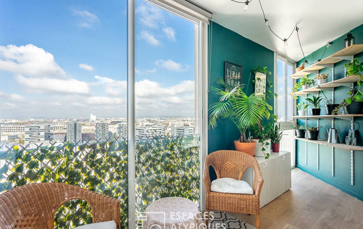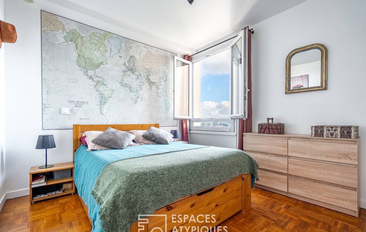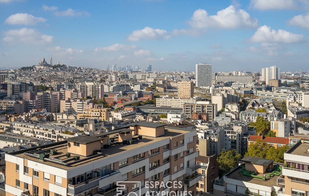 Located on the 23rd floor of a secure building on Avenue de Flandre, this 62.14 sq m (Carrez Law) apartment boasts breathtaking views.