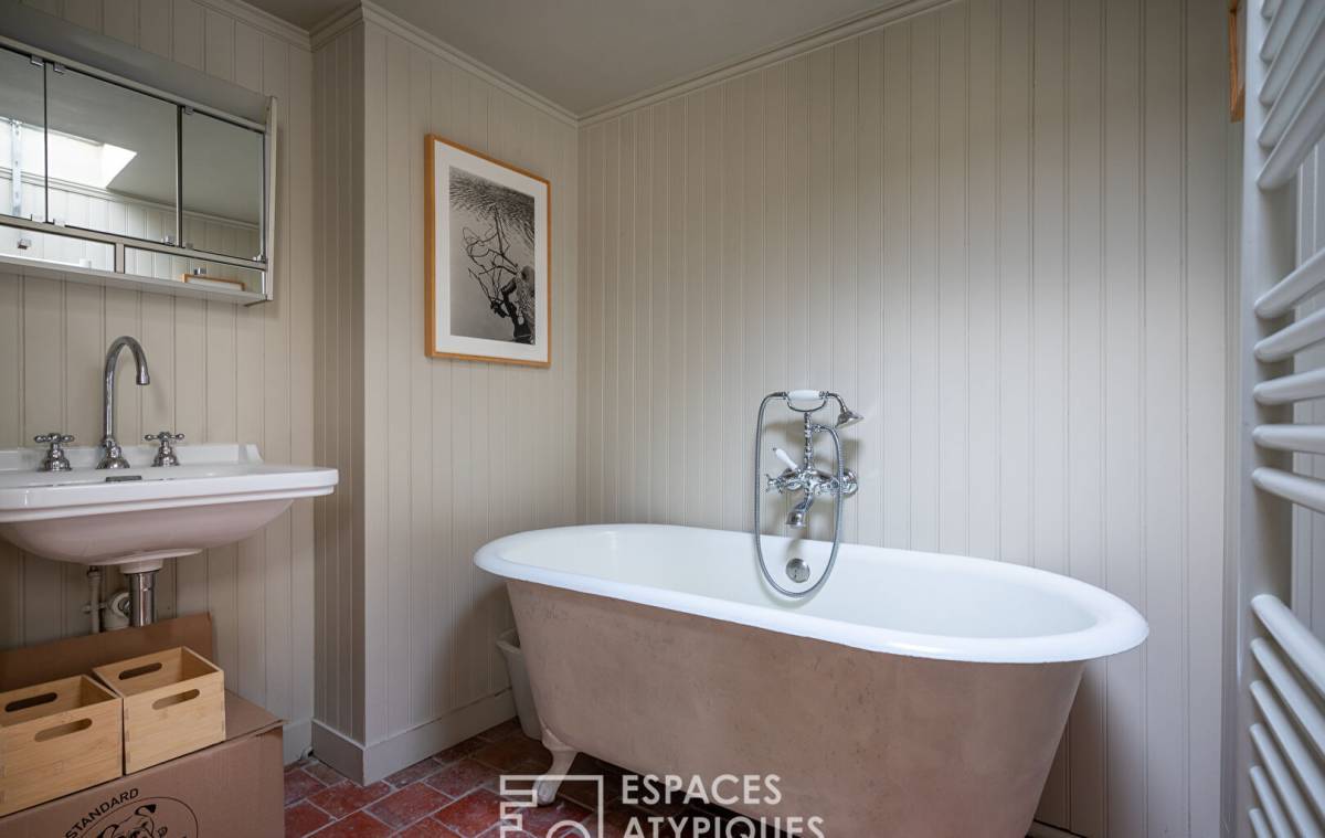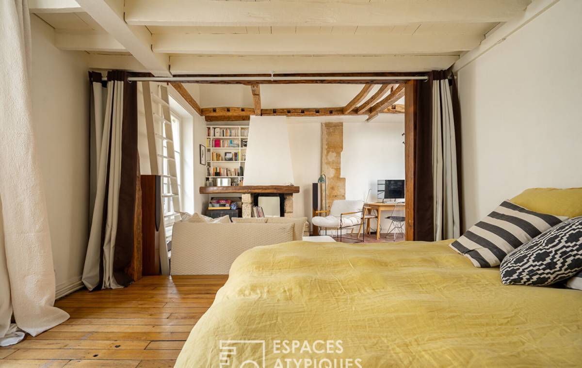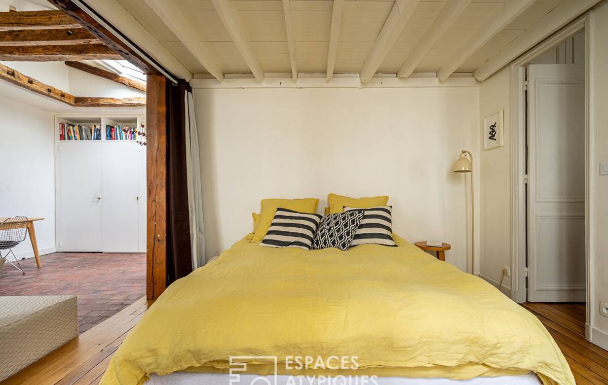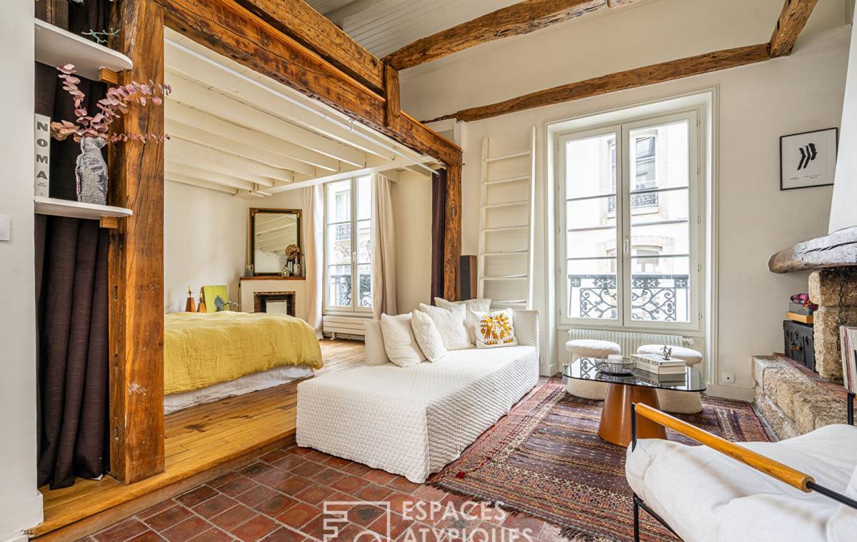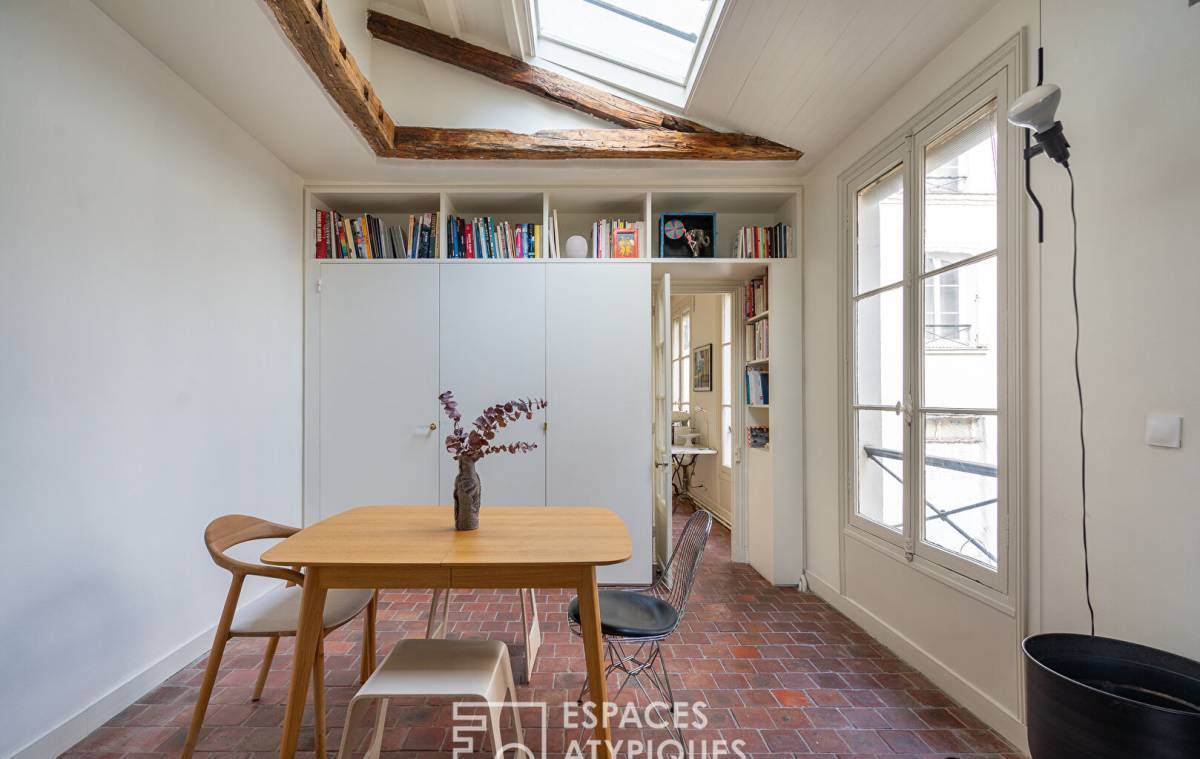 With its 3.70-meter high ceilings, terracotta tiles from a château, and fireplaces, it's a truly charming apartment in the heart of the Marais.