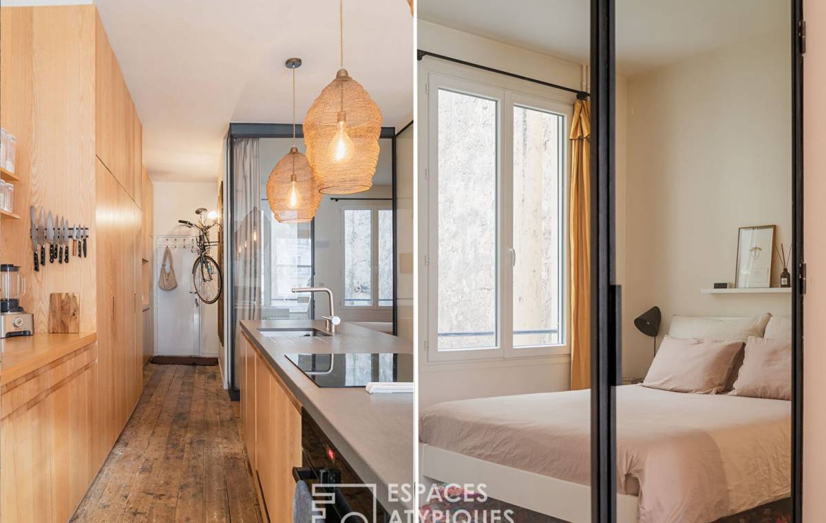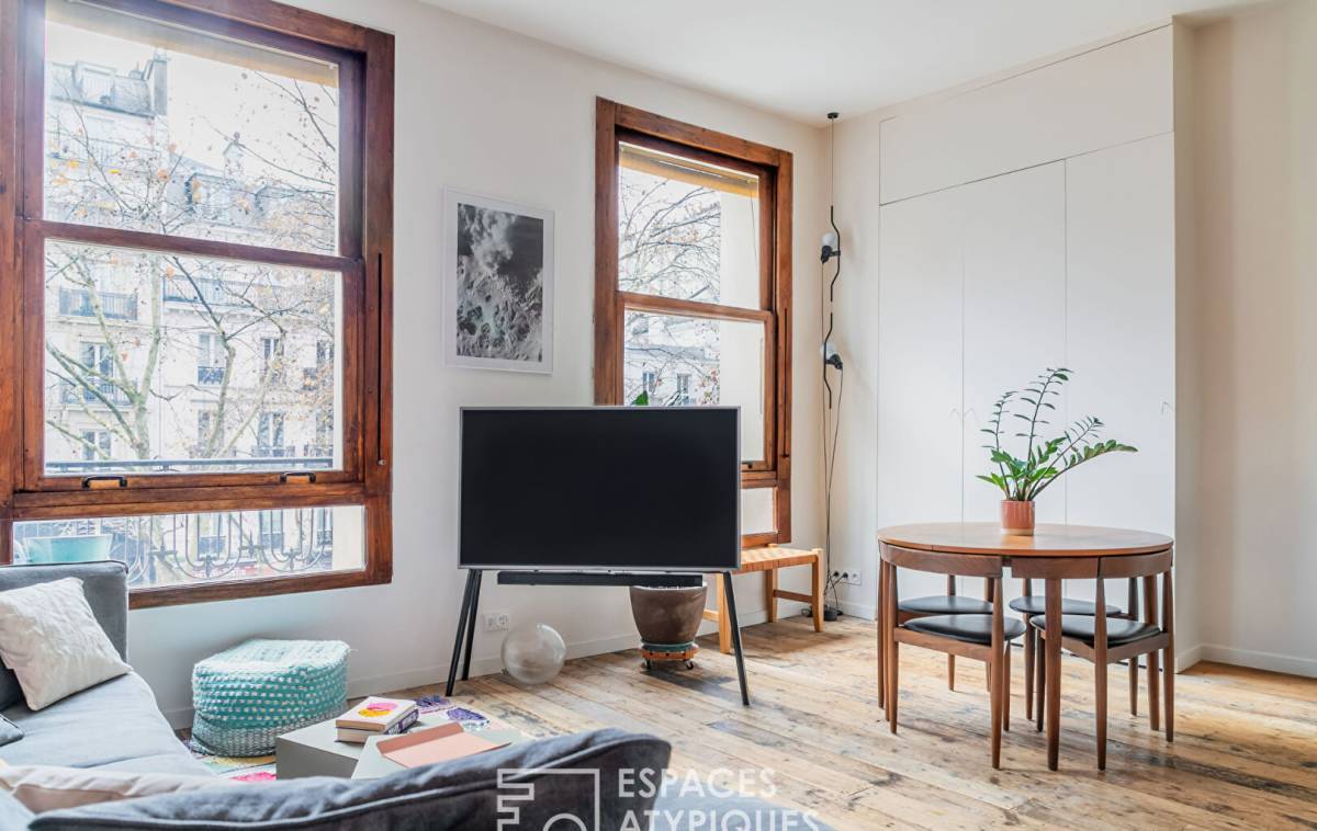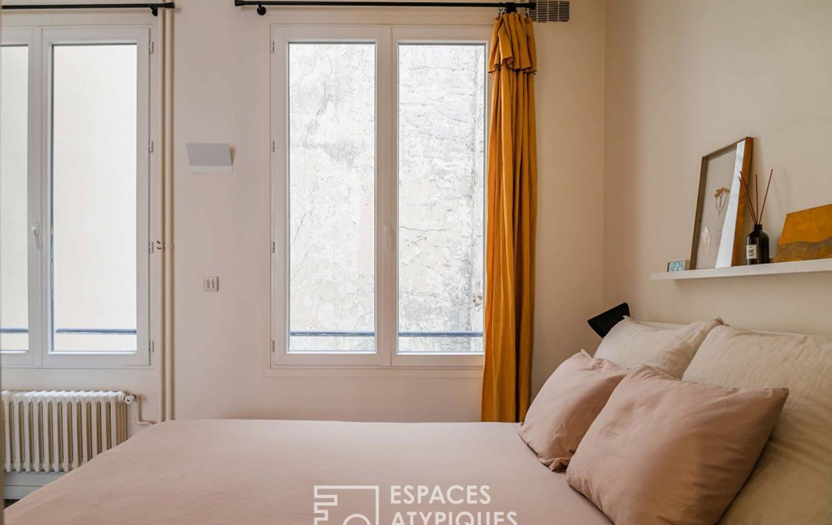 In the old boxes of the Renaissance theater, a stone's throw from Place de la République and the Arts et Métiers district, this tastefully renovated property is located on the second floor of an old building.
