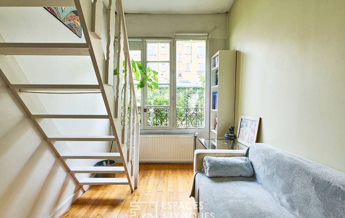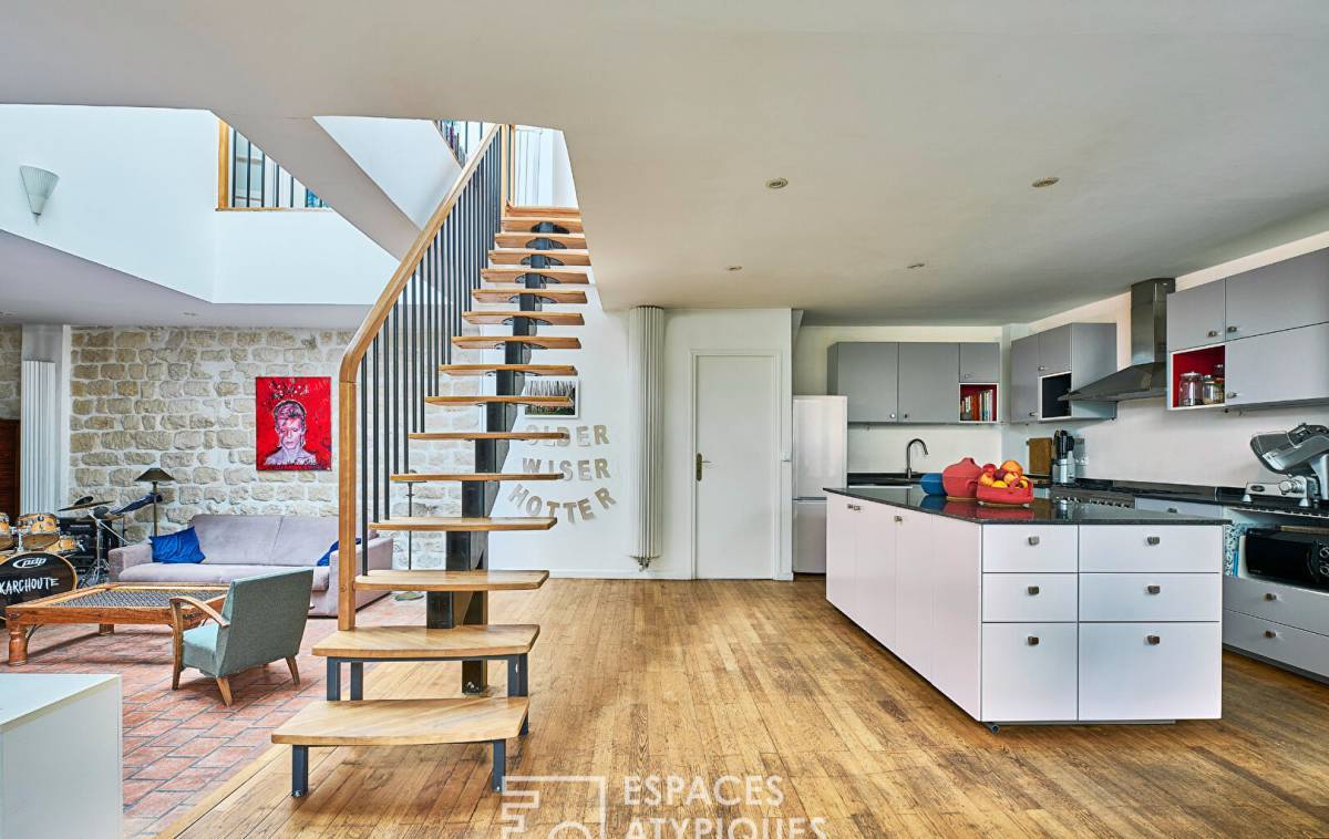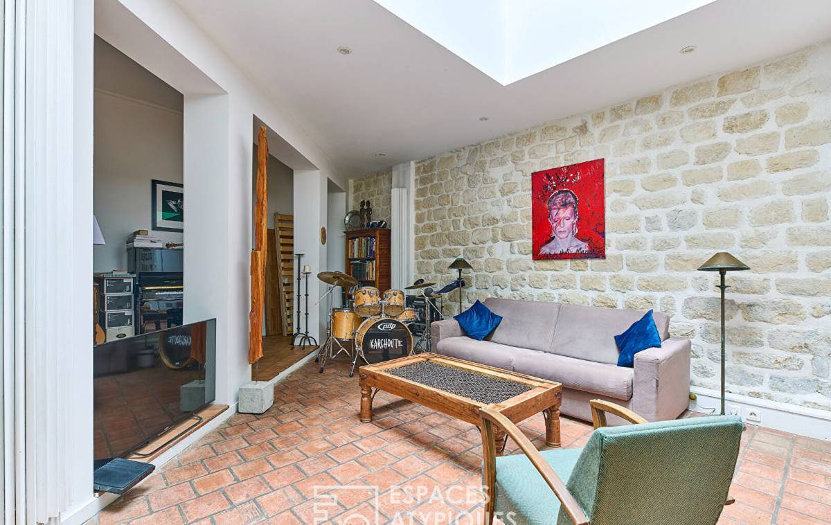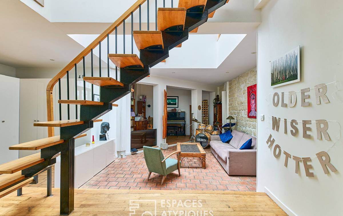 Located just steps from the Bassin de la Villette, nestled in a discreet, flower-filled courtyard, this 141 m² (1600 sq ft) house (157 m² floor area) offers a calm, bright, and welcoming living environment.
