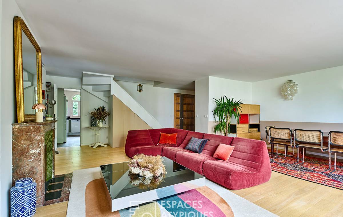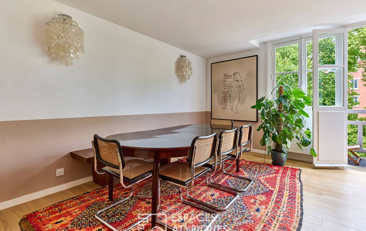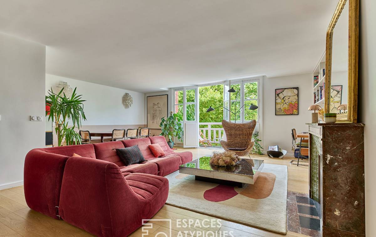 Located on the second floor of a historic mansion, the former home of a famous French painter, this recently renovated crossing duplex of 127,18 sqm (121.64 sqm Carrez law) with 3.45 sqm balcony, captivates with its authentic charm, ideal layout, and unique ambiance.