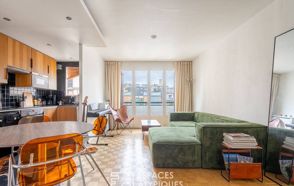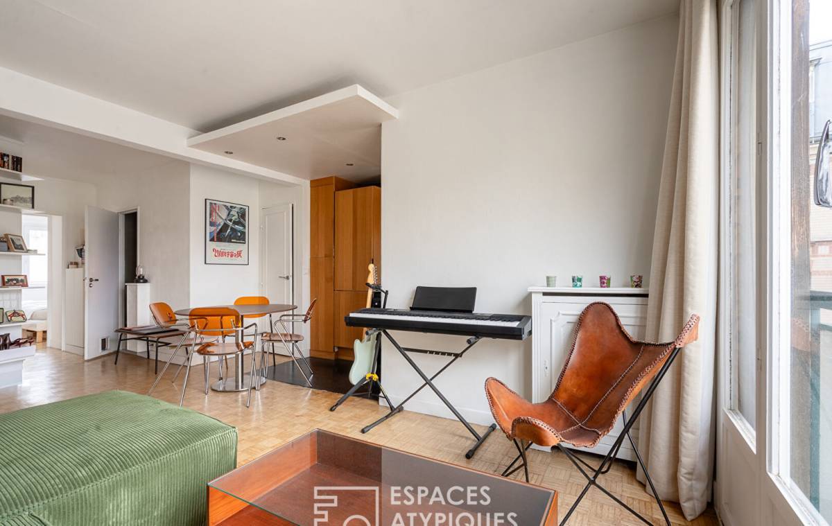 Cet appartement traversant Est-Ouest entièrement modulable a fait l'objet d'une rénovation de qualité lui ayant conféré un esprit résolument cosy et contemporain.
