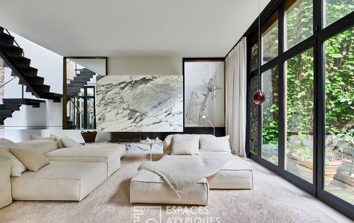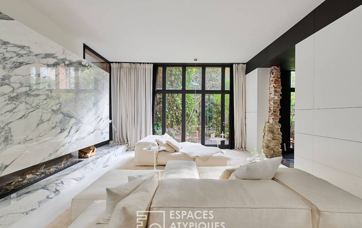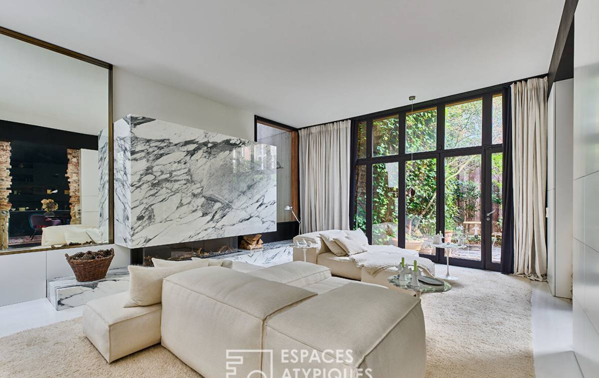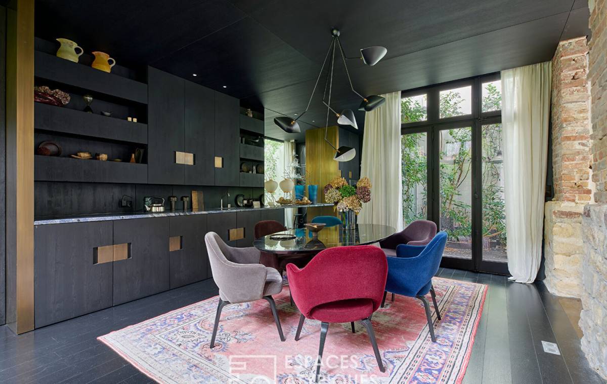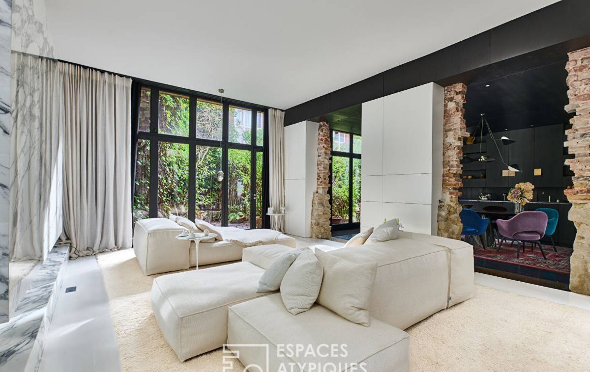 Nestled at the end of a secluded alley, in a carefully designed and privileged setting, this 160.42 m² (158.62 m² Carrez) property, reminiscent of a house-loft, offers a unique living environment, enhanced by a refined and meticulously curated Japanese-inspired décor.