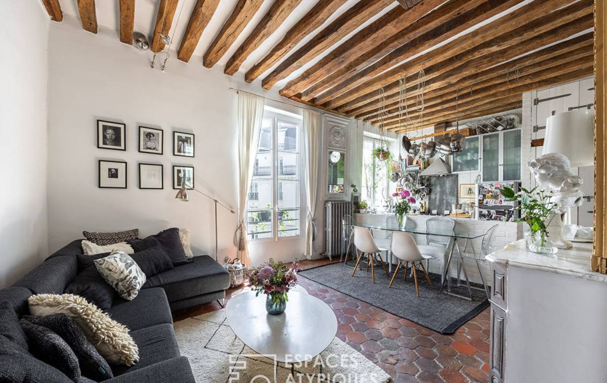 Just a stone's throw from Rue de Bretagne and the legendary Place des Vosges, lies a duplex apartment with a unique atmosphere.