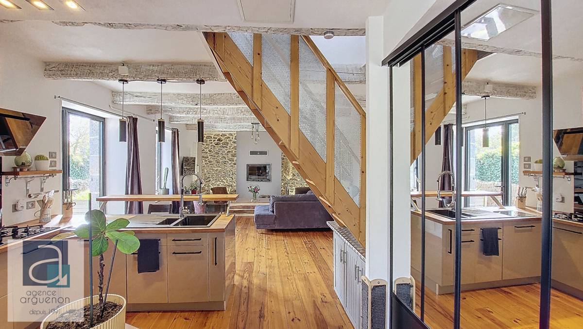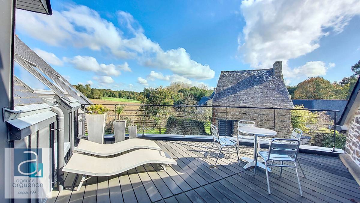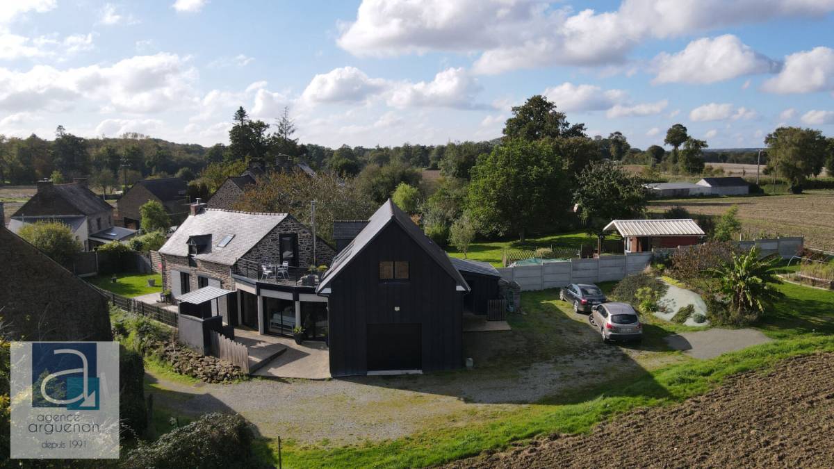 This superb house of character, located on the banks of the Rance, combines the charm of the old with a contemporary extension bathed in light. The warm living room is organized around a fireplace with insert, offering a friendly atmosphere opening onto a tastefully fitted kitchen. The veranda, equipped with a wood stove, becomes a perfect place for sharing and relaxation in all seasons. The contemporary extension also adds a modern and bright touch to the whole, creating harmonious and airy spaces. The bedrooms are large, bright and overlook the surrounding countryside, ensuring absolute tranquility and benefiting from a solarium-style terrace which invites moments of relaxation, offering a little corner of sunny paradise. Located in a small hamlet, this house combines privacy and timeless charm, without any vis-à-vis. The garden, carefully maintained, offers a green and peaceful setting which extends through each space of the house. Ideal for enjoying the peace and quiet of the countryside while benefiting from a welcoming outdoor space conducive to relaxation. The large garage is a real asset for this property. Carefully designed, it has an excellent layout and a finish comparable to that of a living room. Generous storage spaces optimize organization, while a laundry area and summer kitchen equipment add functionality and comfort. This versatile space can easily meet storage or additional living needs as desired.