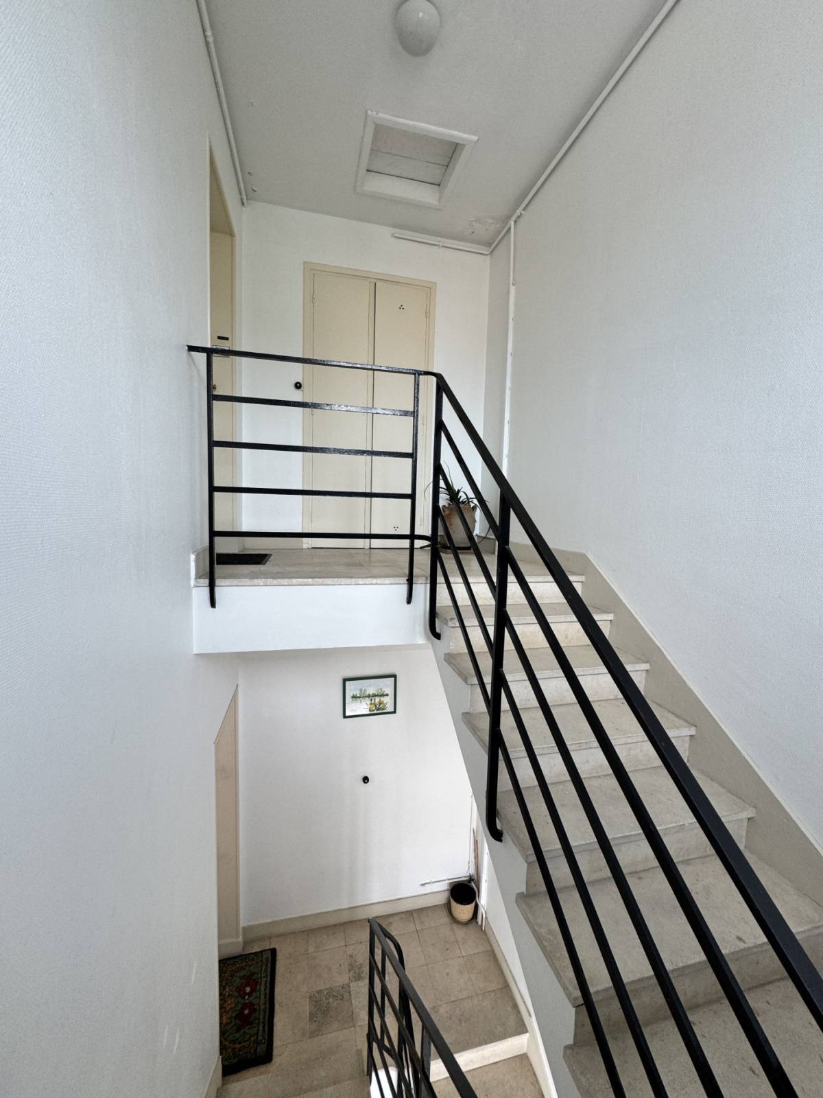 Small shower room, separate toilet. Nestled in a typical reconstruction building, it is very well maintained. Space in the common areas for bicycles.
