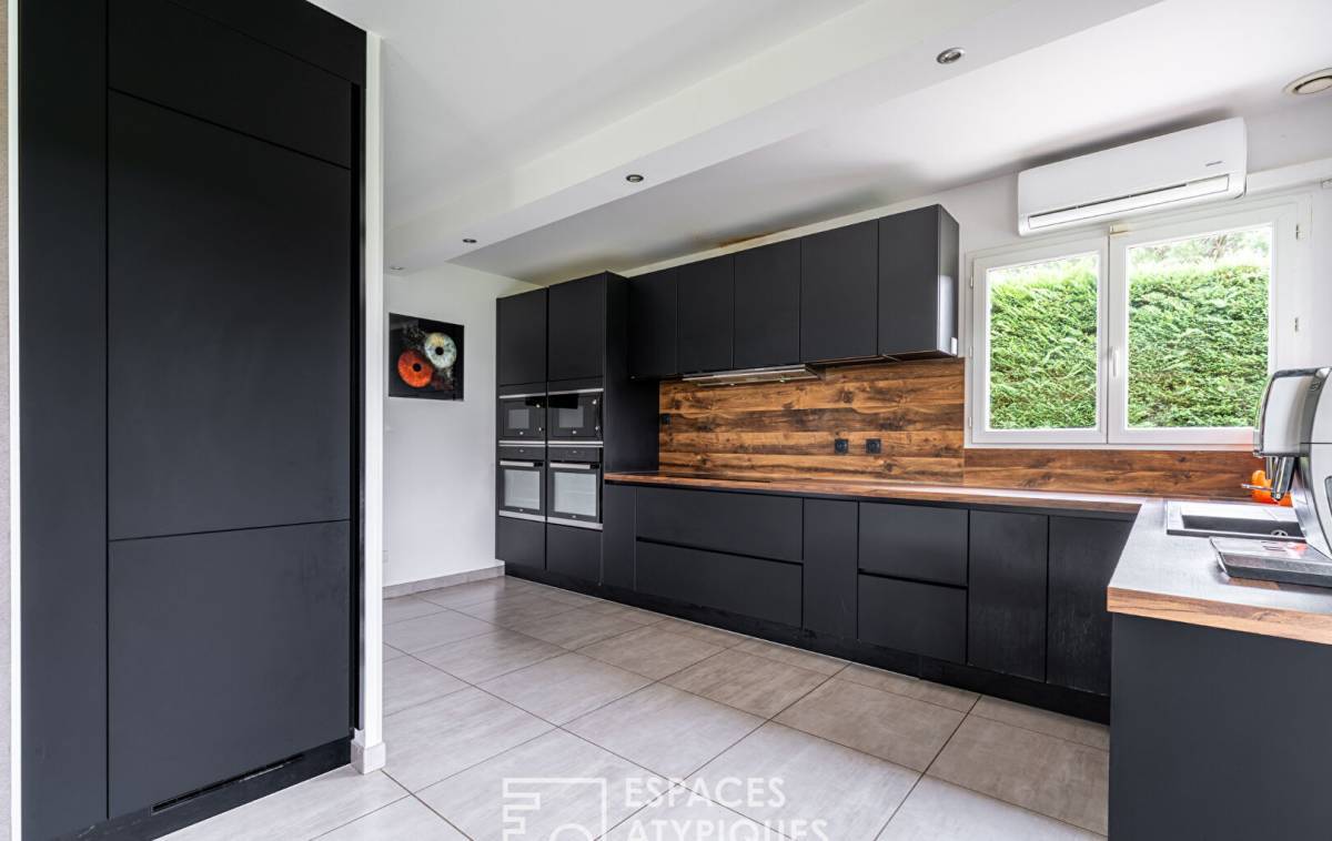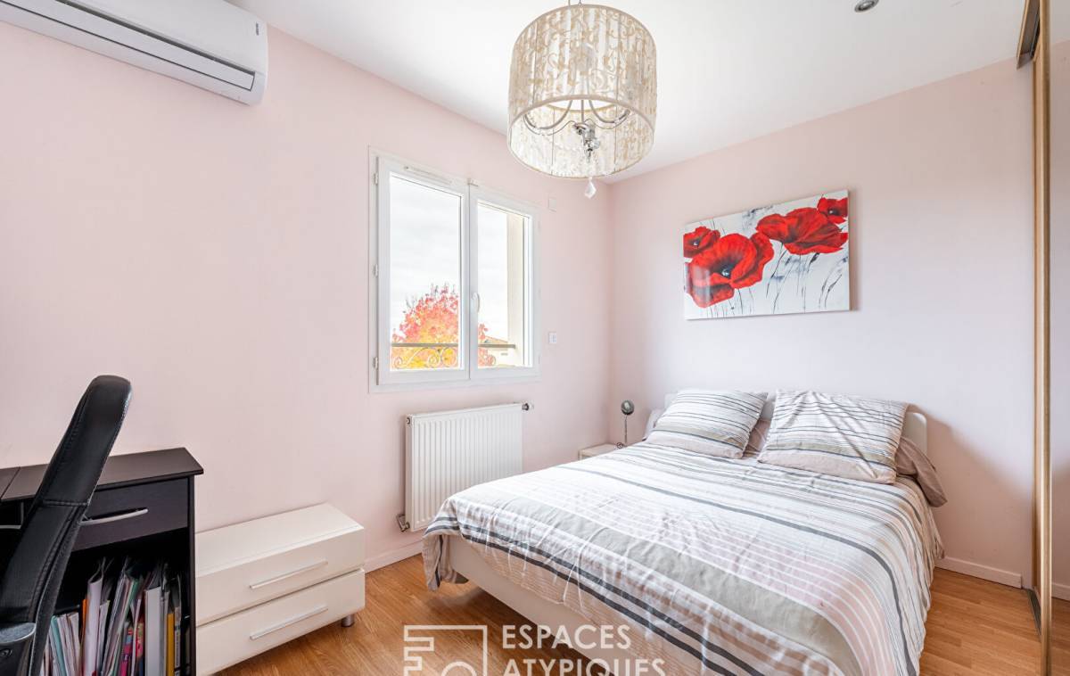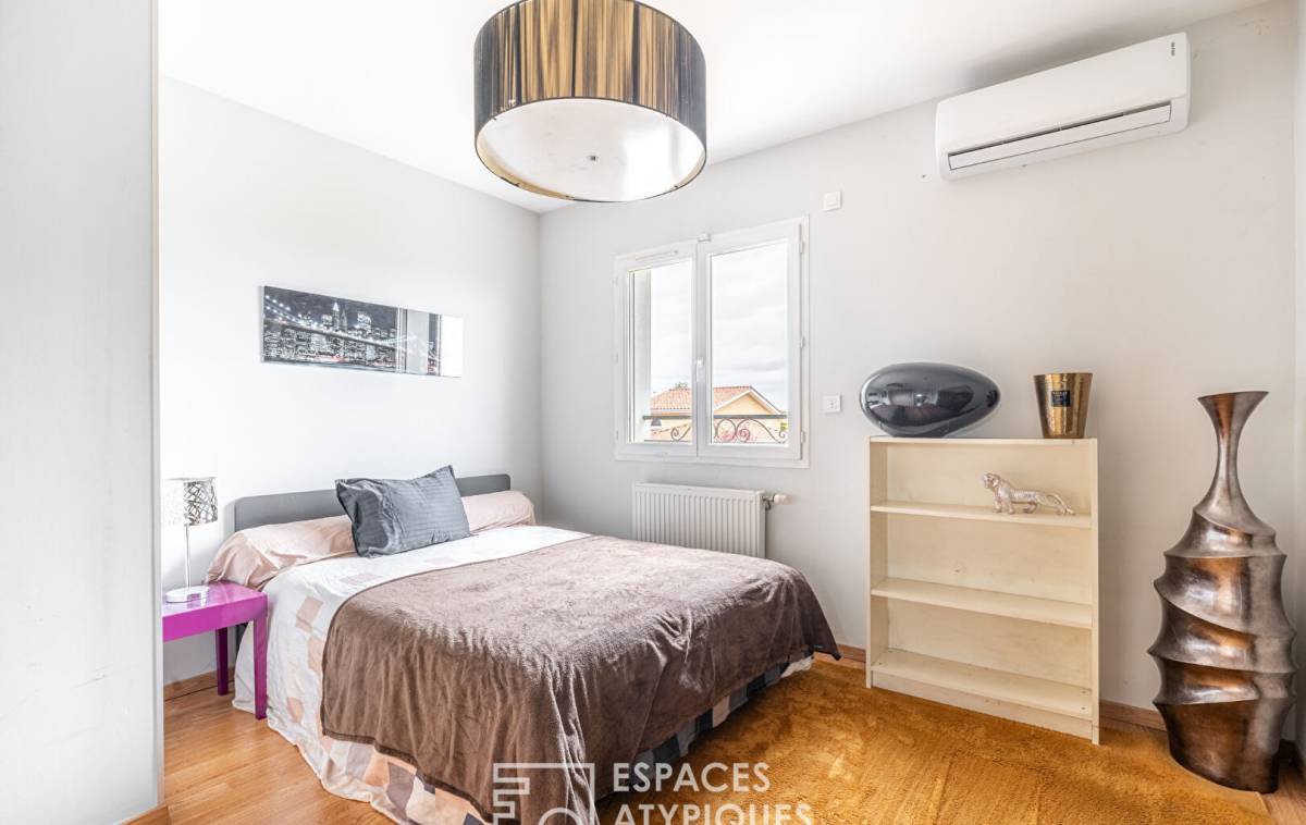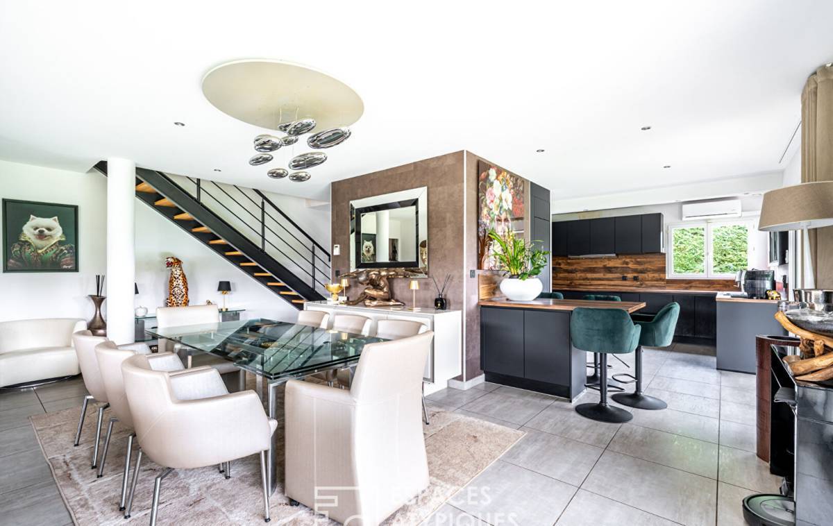 Located in a quiet, residential area in Haut-Saint-Bonnet-de-Mûre, this modern villa offers exceptional volumes and high-quality amenities. Upon entering, a spacious 80 sqm living room is characterized by its brightness thanks to numerous bay windows overlooking the garden. The garden, carefully landscaped, is completed by a salt-water swimming pool. This open-plan living room with a modern kitchen, renovated in 2021, is perfectly equipped with a functional utility room and integrated wine cellar. The single-story sleeping area houses a master suite with a double dressing room, a full bathroom, and a second bedroom. Upstairs, three additional bedrooms, all with built-in storage, as well as a shower room, complete this level. Parking is provided with a tiled double garage. The town has schools and middle schools within walking distance, various school buses for some establishments and high schools. Numerous sports and cultural associations. St Exupéry Airport and TGV train station accessible in 10 minutes. DPE: C / GES: C Estimated annual energy costs for the home between EUR1,760 and EUR2,450 per year -