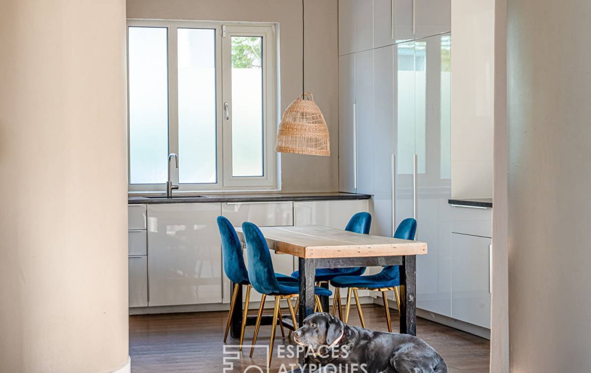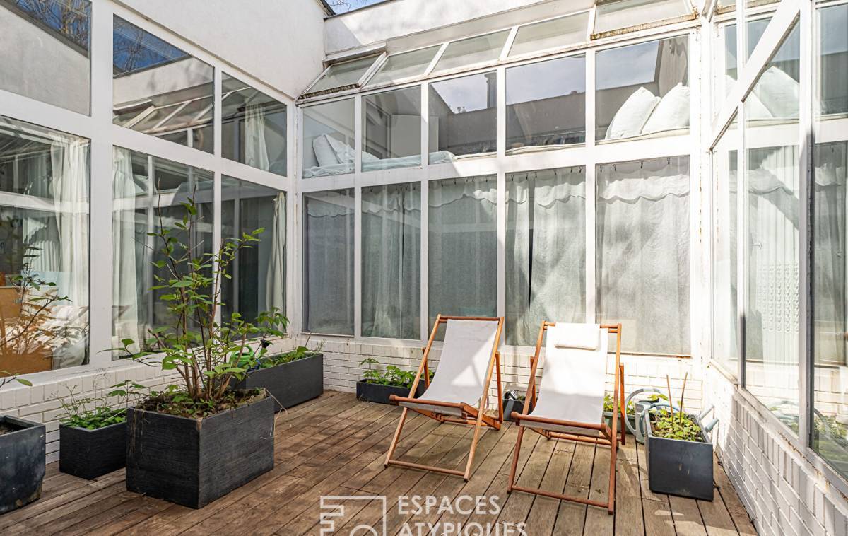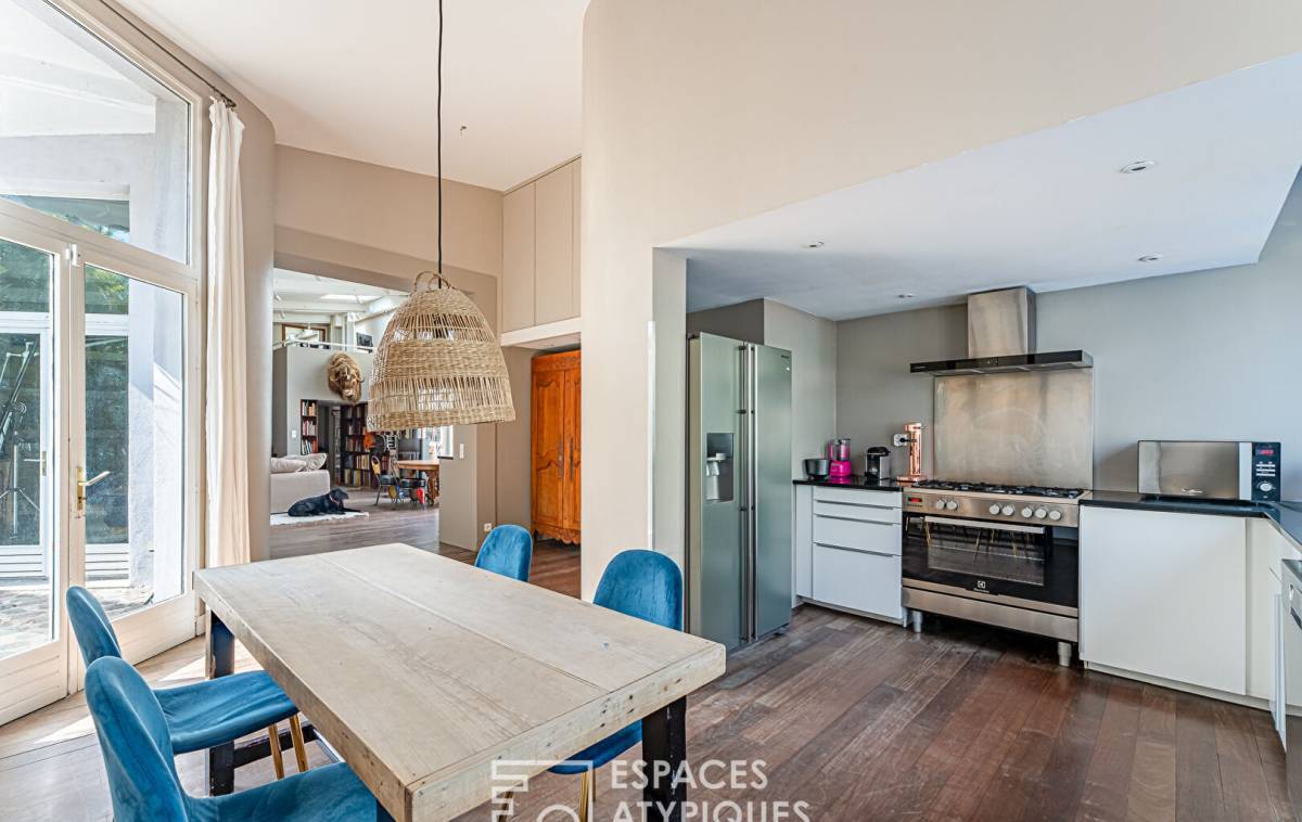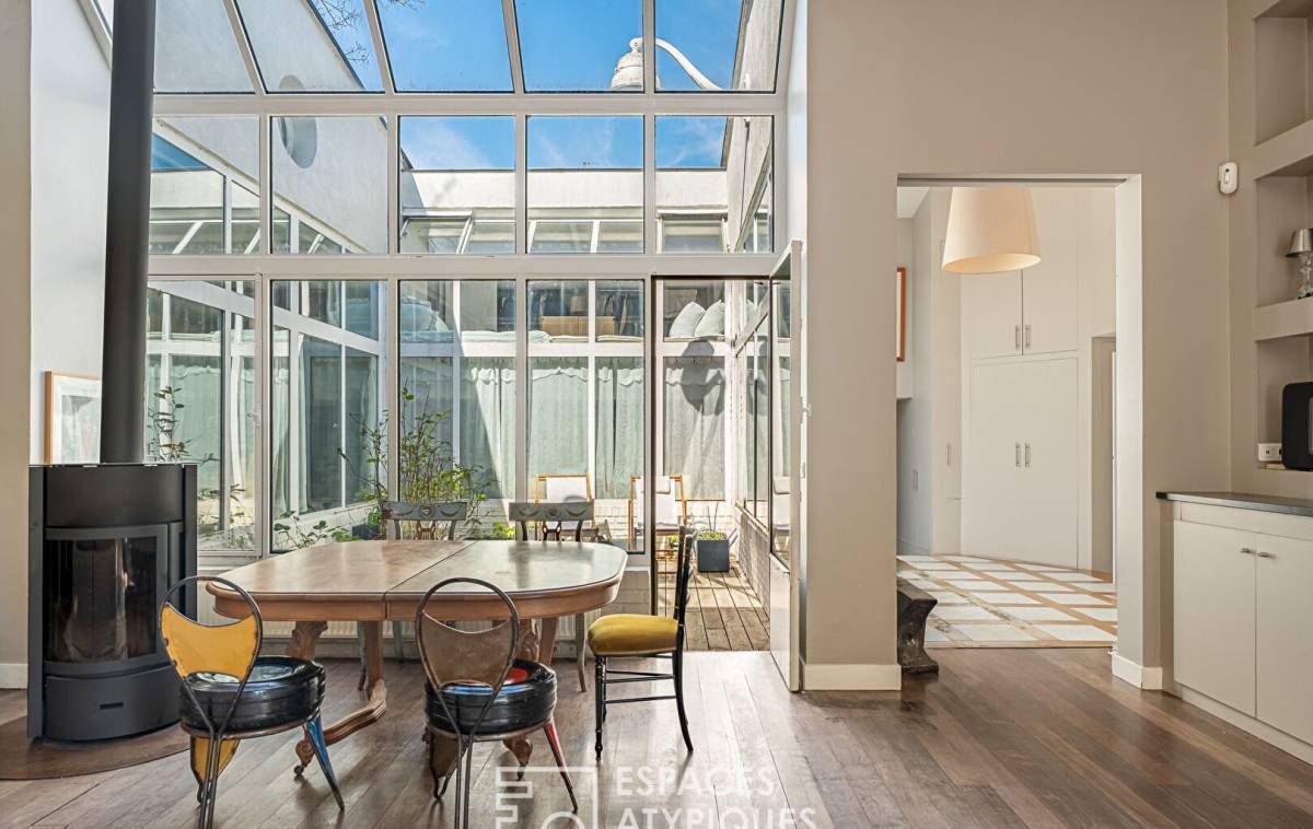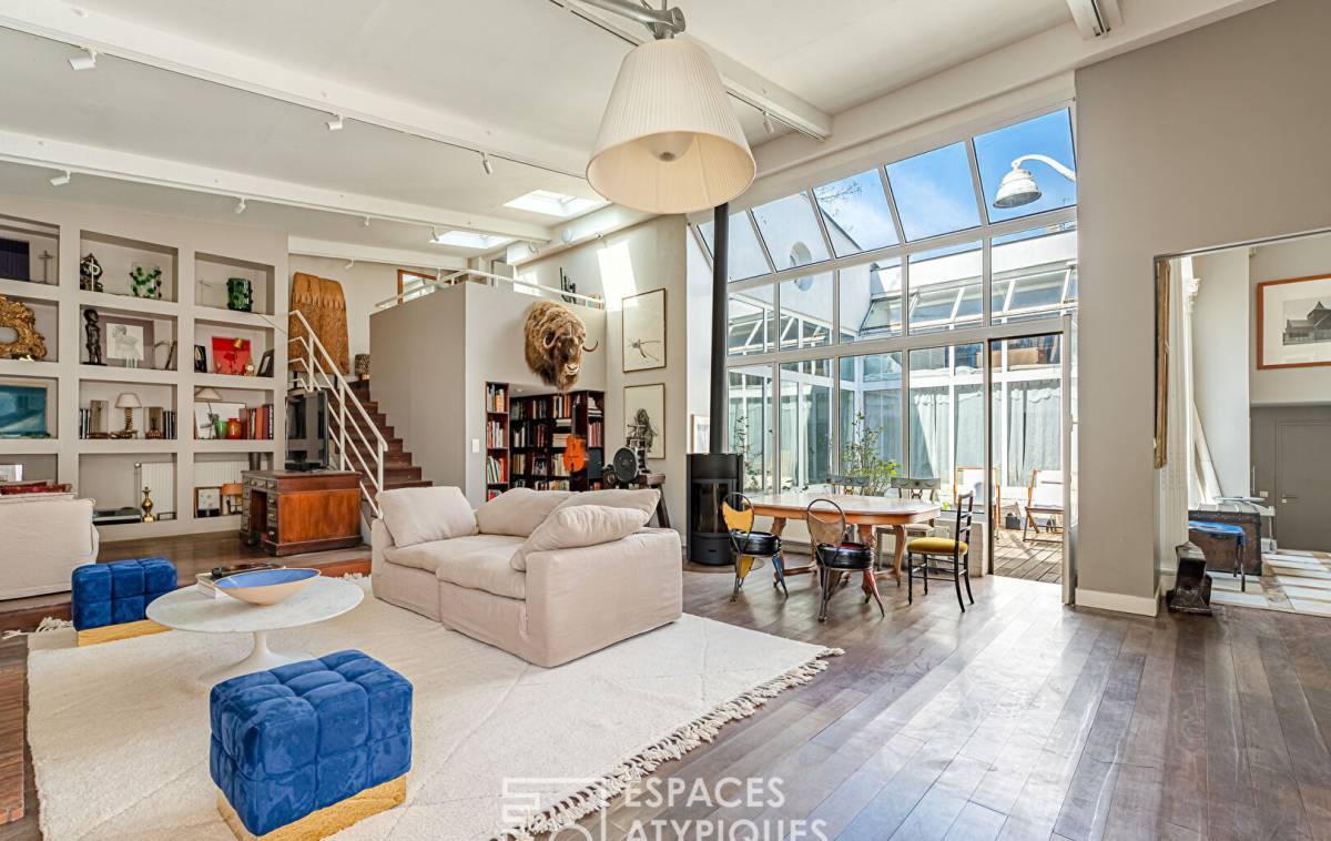 The tone is set from the moment you enter. An entrance gallery leads to two independent studios?ideal for entertaining, working remotely, or housing an au pair. before opening onto a hallway bathed in natural light, featuring a preserved patio behind a glass roof that structures the heart of the loft, partly as an open space.